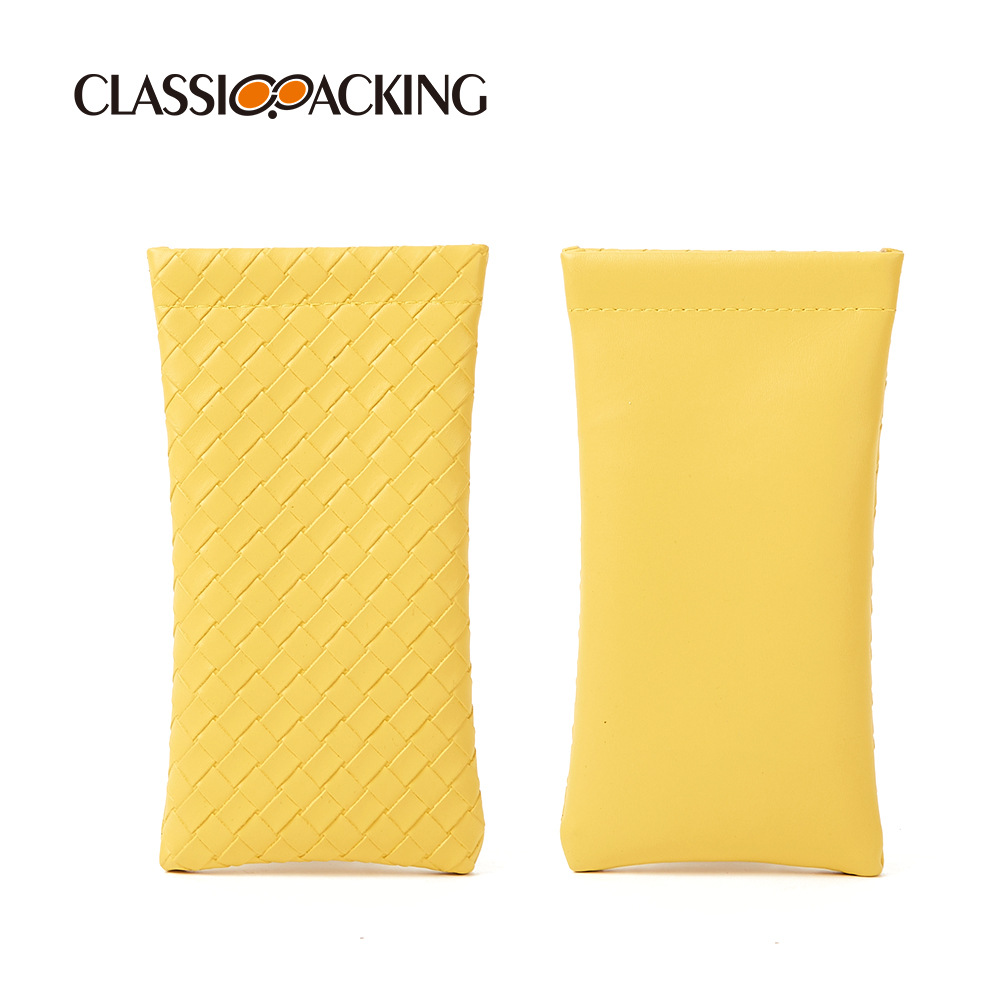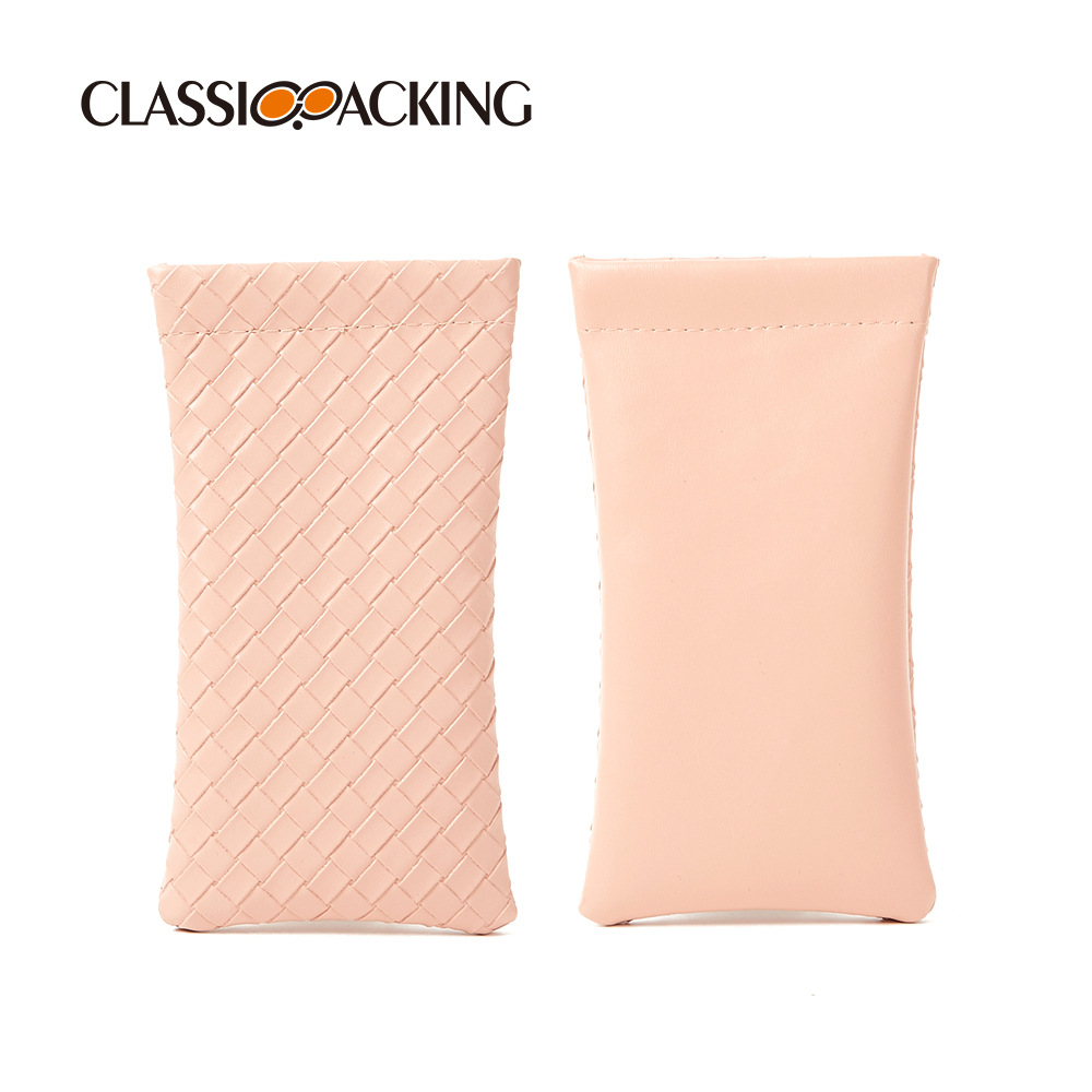 新款简约时尚眼镜包纯色编织PVC革眼镜收纳袋弹片近视太阳眼镜袋