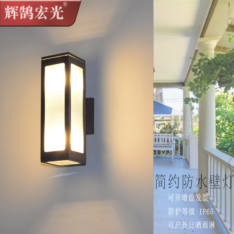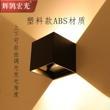 야외 벽 램프 이중 헤드 위아래로 발광 방수 안뜰 현대 간단한 외벽 사각형 알루미늄 3 면 광 전송 램프스토어 가기