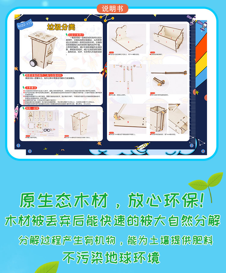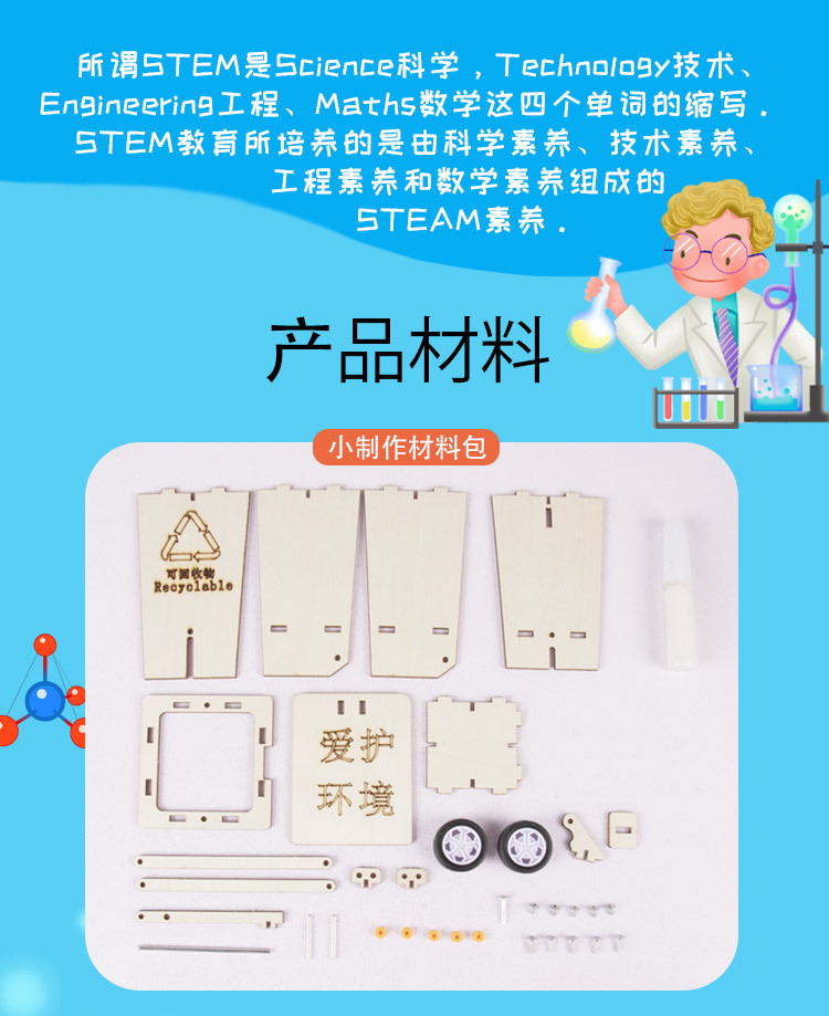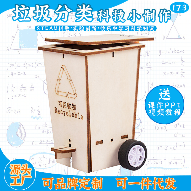 과학기술 소량 제작 DIY 쓰레기 분류 초등학생 STEM 창조적 인 수제 퍼즐 작은 발명품 플립 쓰레기통