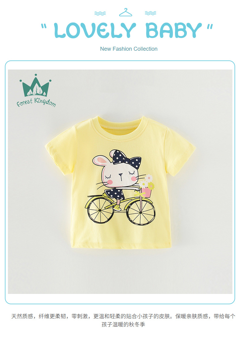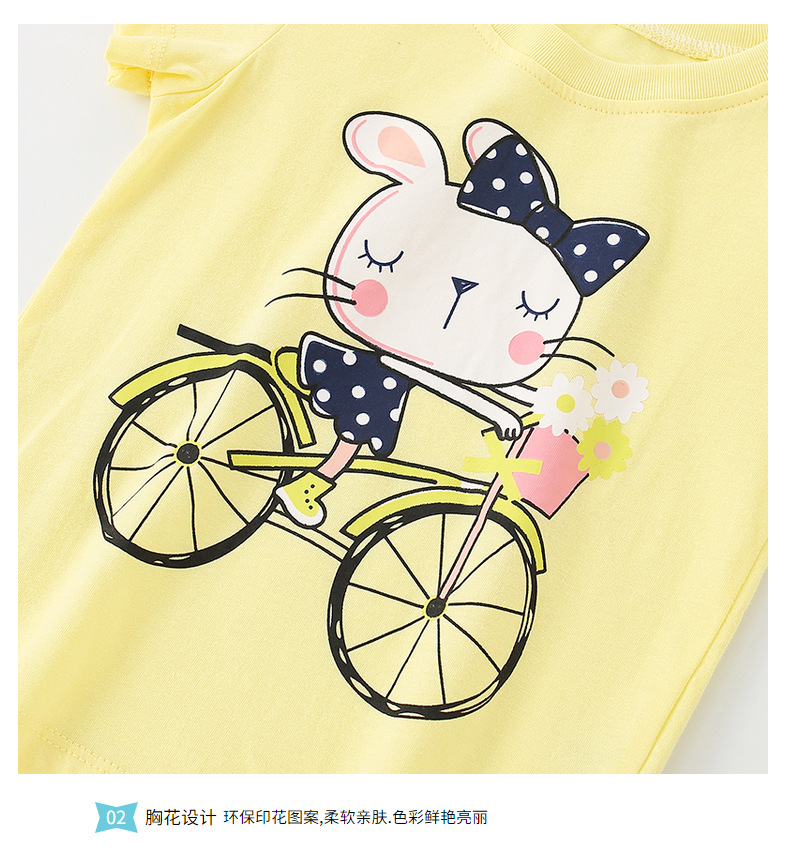 여름 소녀 티셔츠 짧은 소매 면화 새로운 유럽과 미국 아동복 중소 어린이 만화 인쇄 귀여운 소녀 옷