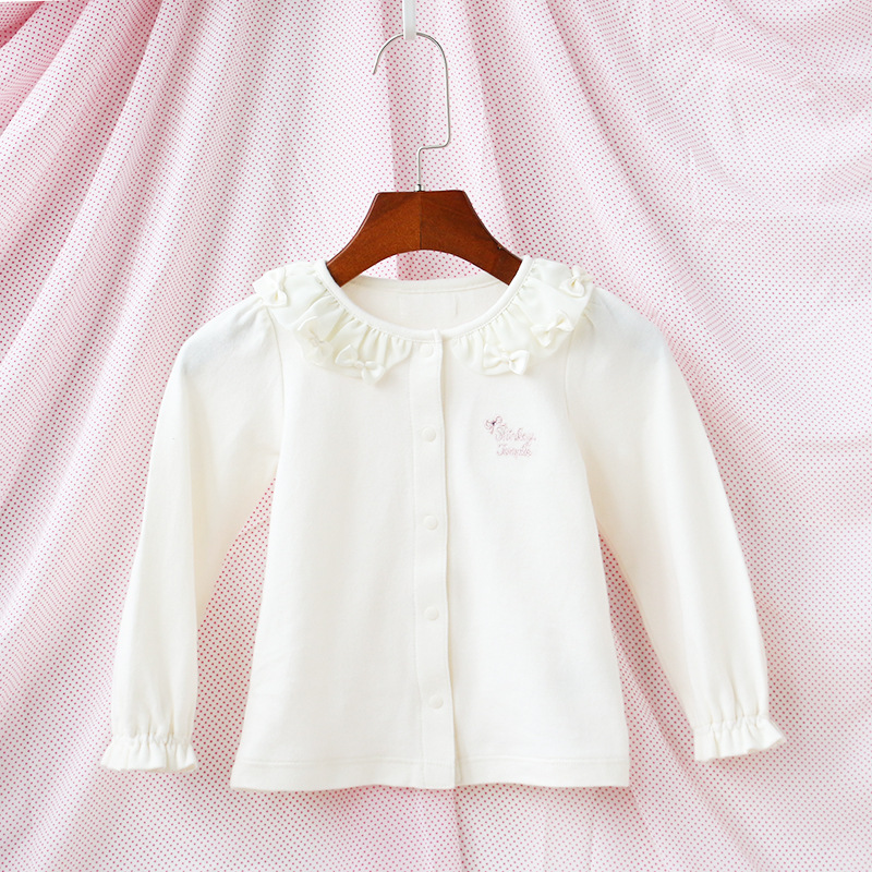 St 아동복 Xiulan Dengbo 소녀 공주 스타일 쉬폰 활 인형 칼라 긴팔 셔츠 내부 배송스토어 가기