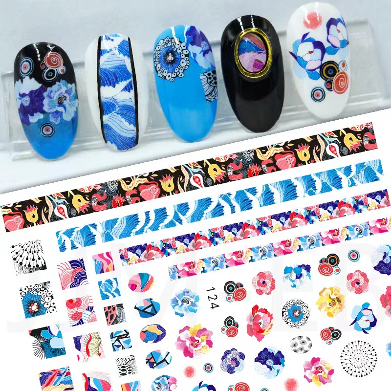 매니큐어 새로운 접착 스티커 여름 데이지 신선한 말린 꽃 꽃잎 중국 스타일 시리즈 종이 카드 포장스토어 가기