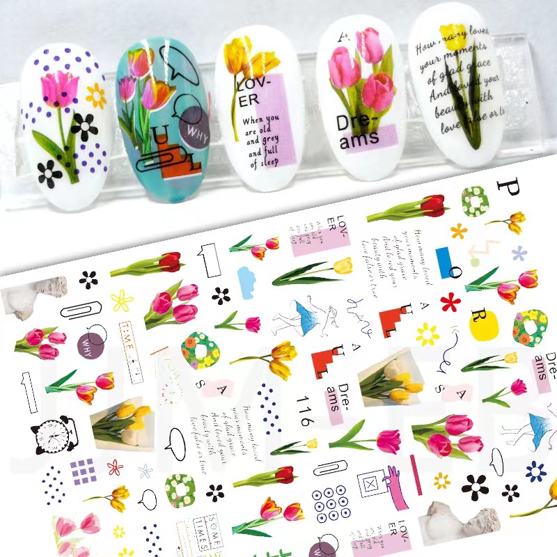 매니큐어 새로운 접착 스티커 여름 데이지 신선한 말린 꽃 꽃잎 중국 스타일 시리즈 종이 카드 포장