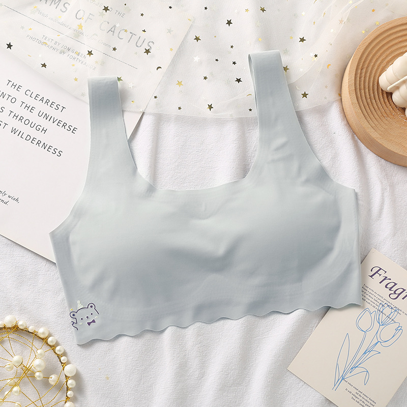 2023 새로운 여름 흰색 얇은 몰드 컵 풀 컵 가슴없는 스틸 링 학생 소녀 속옷 브라 도매스토어 가기