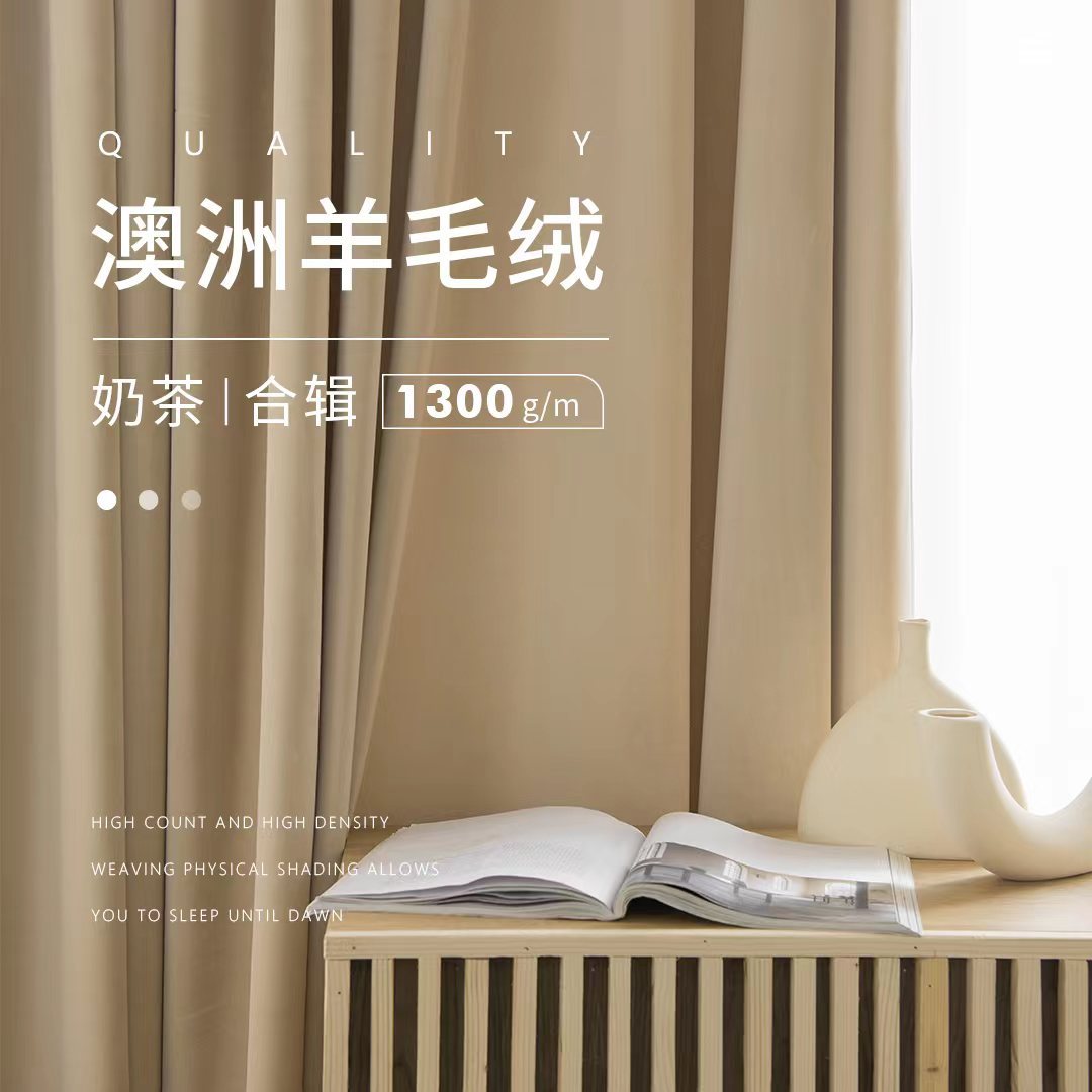 오리지널 호주 양모 밀크티 크림 컬러 커튼 완제품 라이트 럭셔리 프렌치 거실 침실 완전 암막 커튼 천