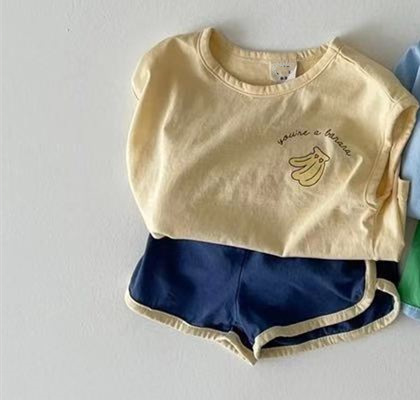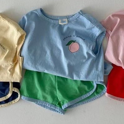 INS 여름 아기 과일 크루넥 반팔 티셔츠 + 반바지 투피스 세트스토어 가기