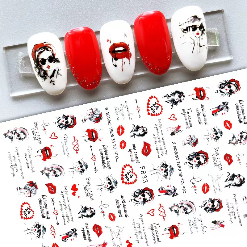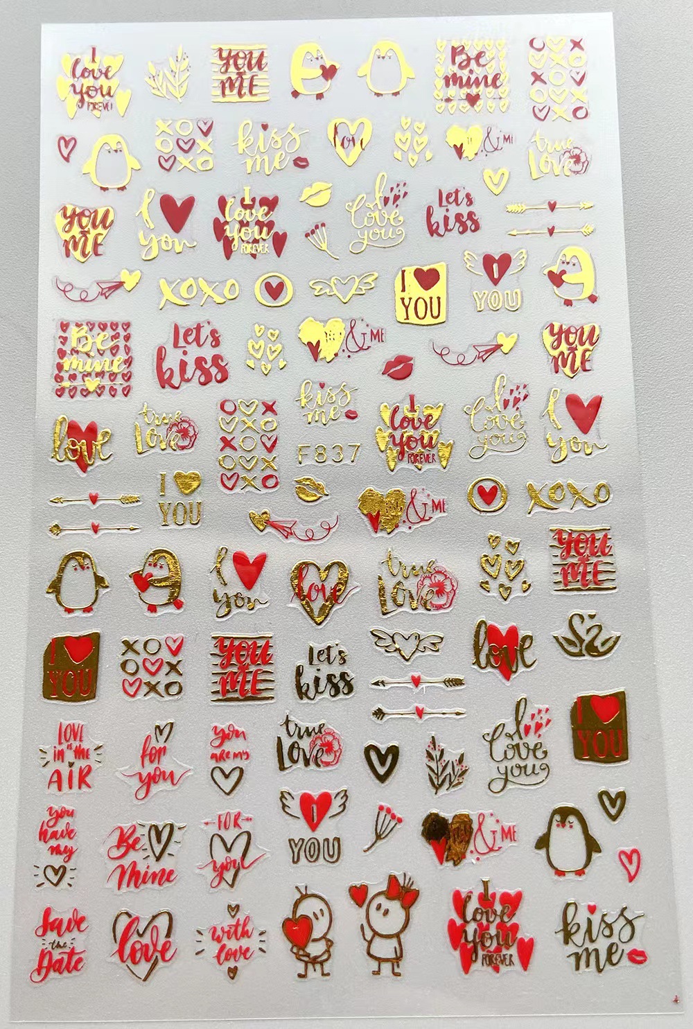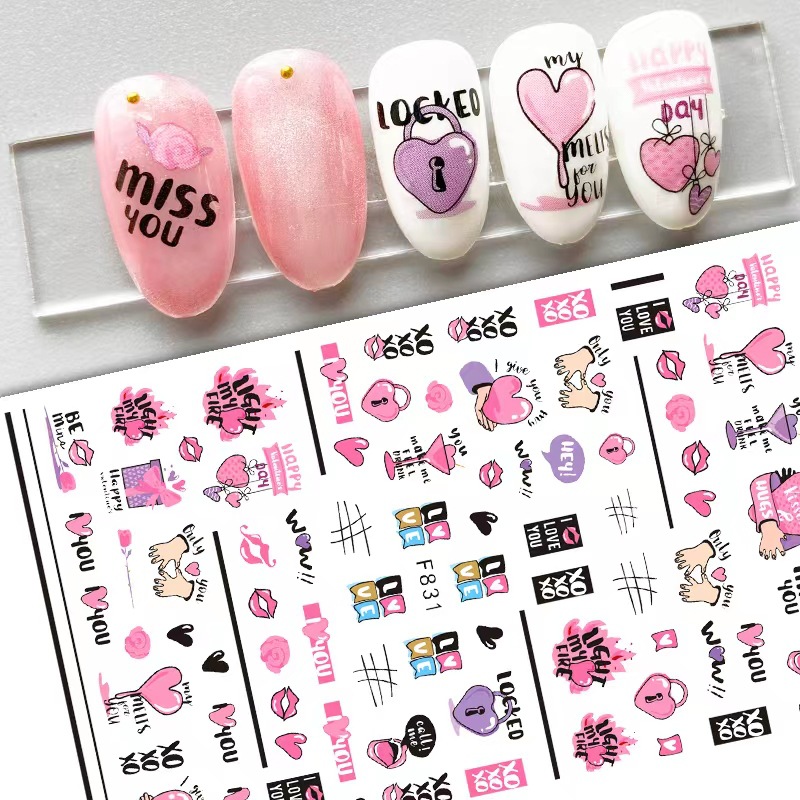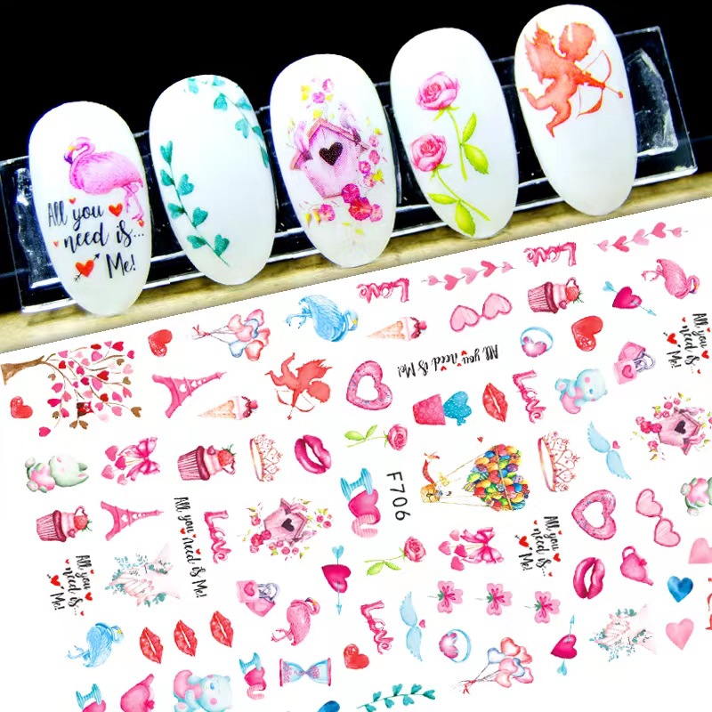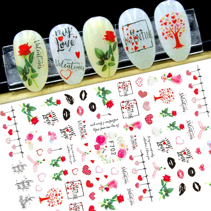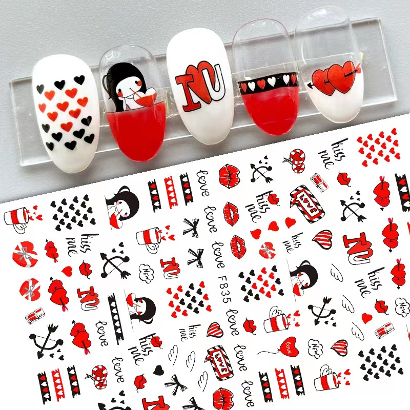 2022 크로스 보더 발렌타인 데이 새로운 사랑 곰 사랑 러시아 큐피드 촬영 하트 시리즈 네일 네일 스티커
