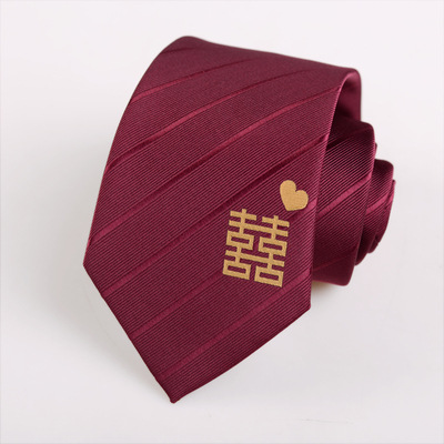 버건디 넥타이 8cm 매듭 무료 지퍼 웨딩 패션 한국 스타일 웨딩 신랑 수 놓은 더블 해피 넥타이 남자의 넥타이