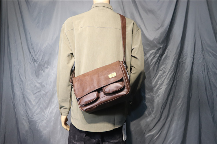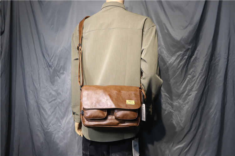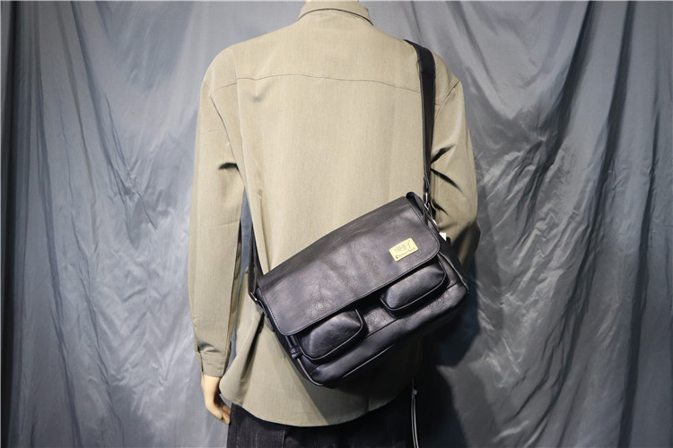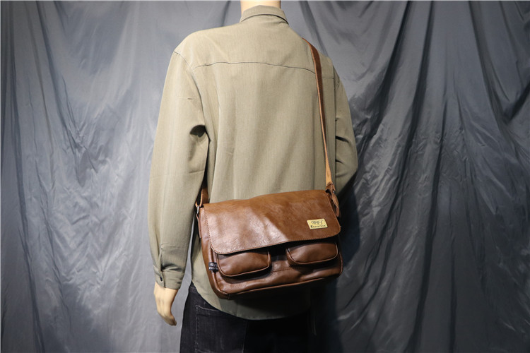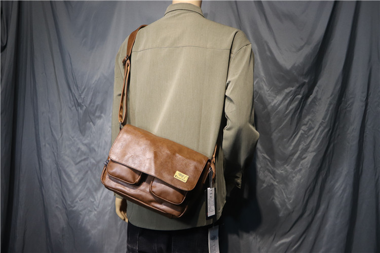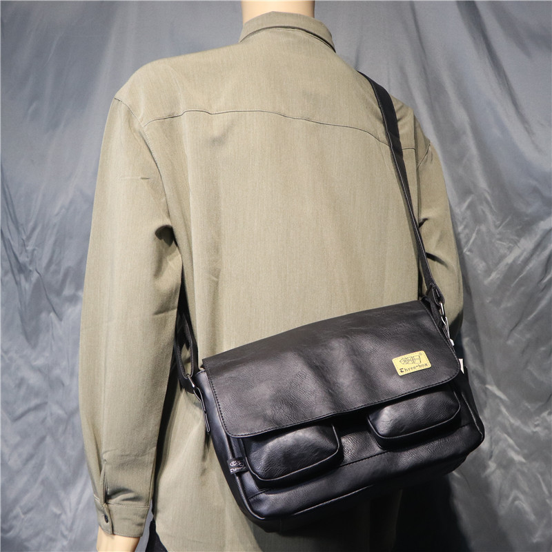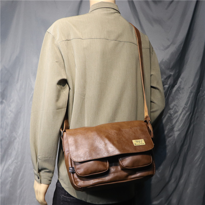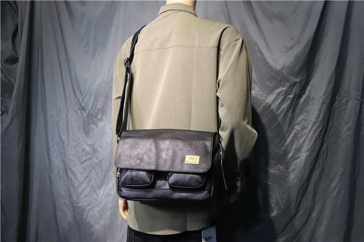 threebox时尚复古潮男单肩包 休闲翻盖邮差包 男女青年斜挎机车包