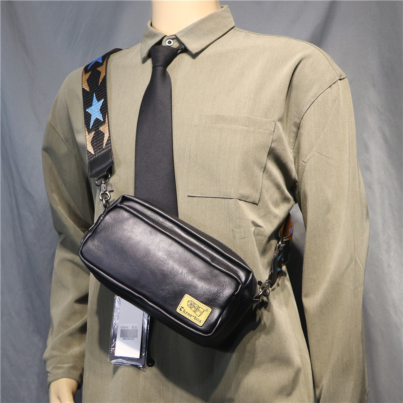 쓰리 박스 일본 한국 남성용 리본 숄더백 캐주얼 스트리트 스타일 힙합 크로스바디 백 지퍼 와이드 밴드 백스토어 가기