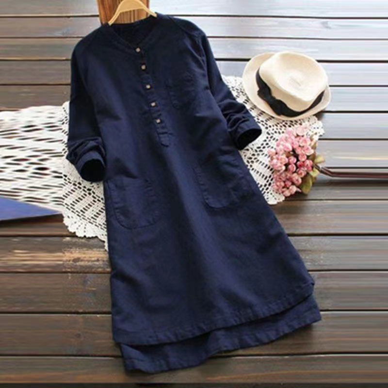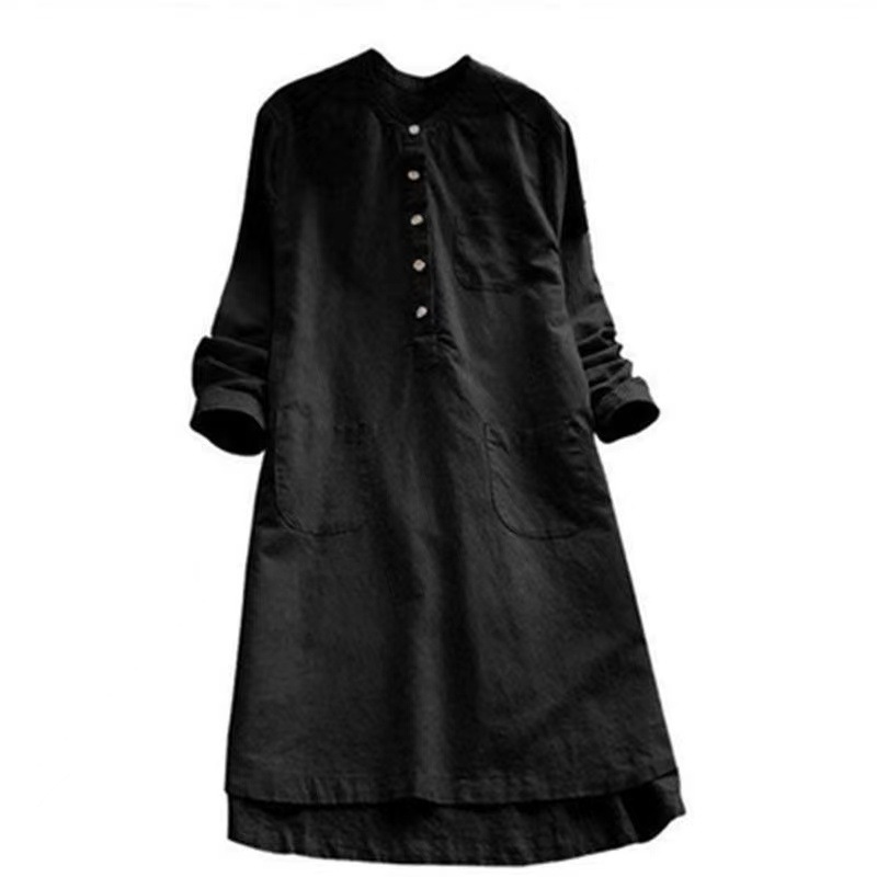 코튼 린넨 중간 길이 긴팔 셔츠 통통한 신상품 슬림핏 슬리밍 여성용 유행 플러스 사이즈 캐주얼 아웃웨어 탑