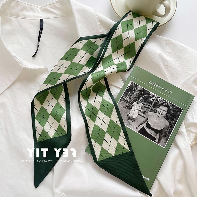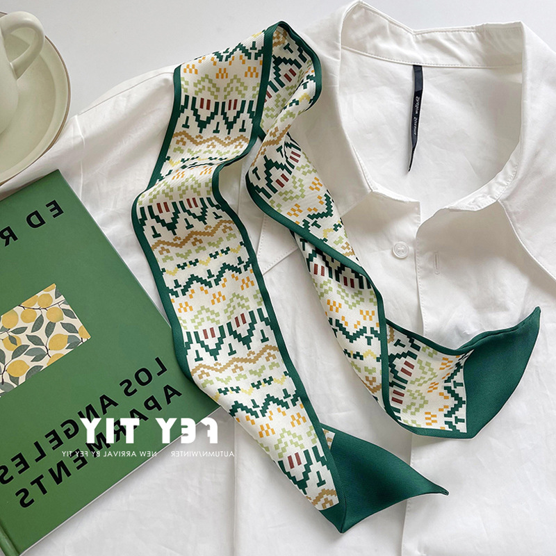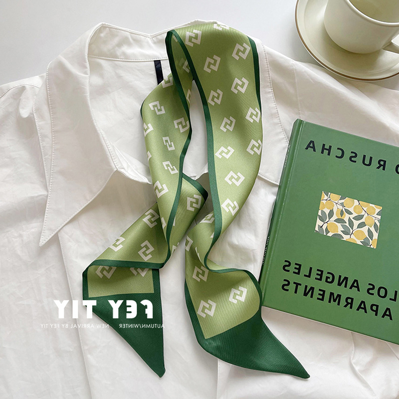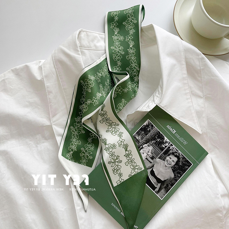 흰색과 부드러운 녹색 작은 실크 스카프 여성의 봄과 여름 좁은 스 트리머 헤어 스트랩 헤어 타이 백 장식 긴 스카프