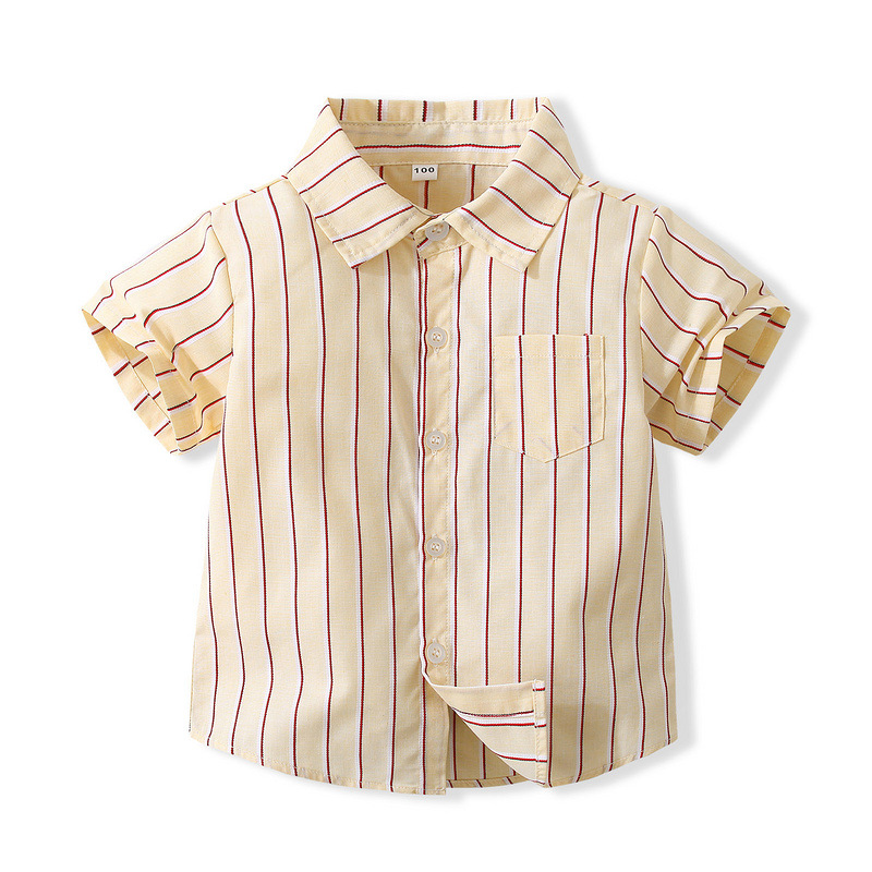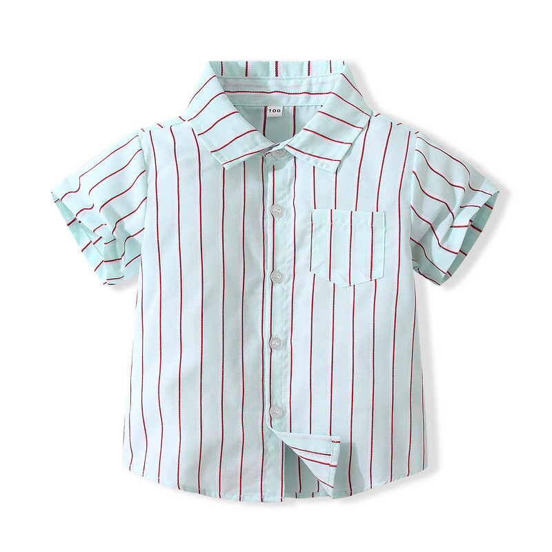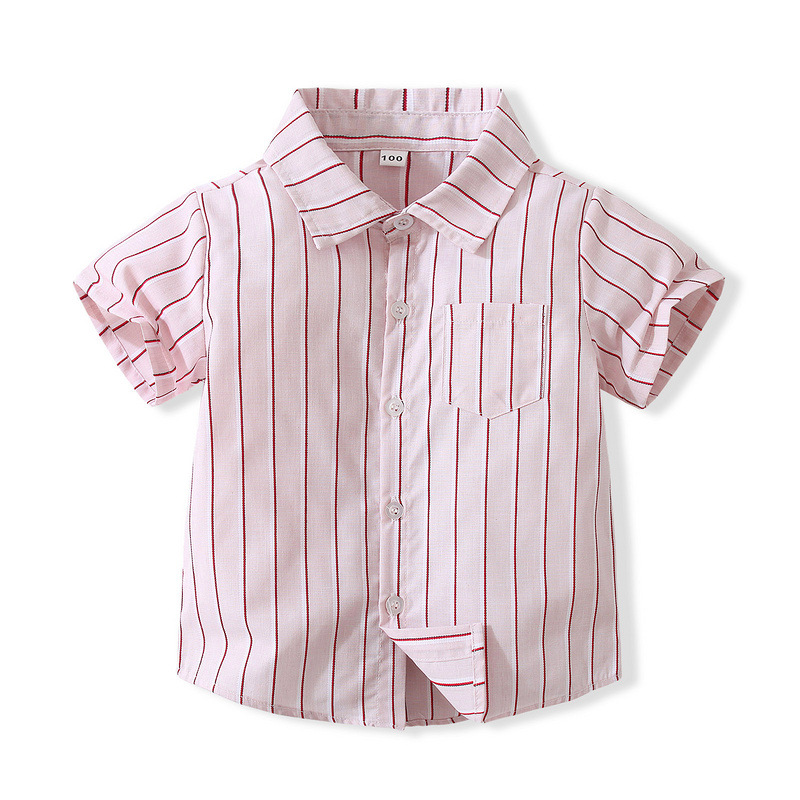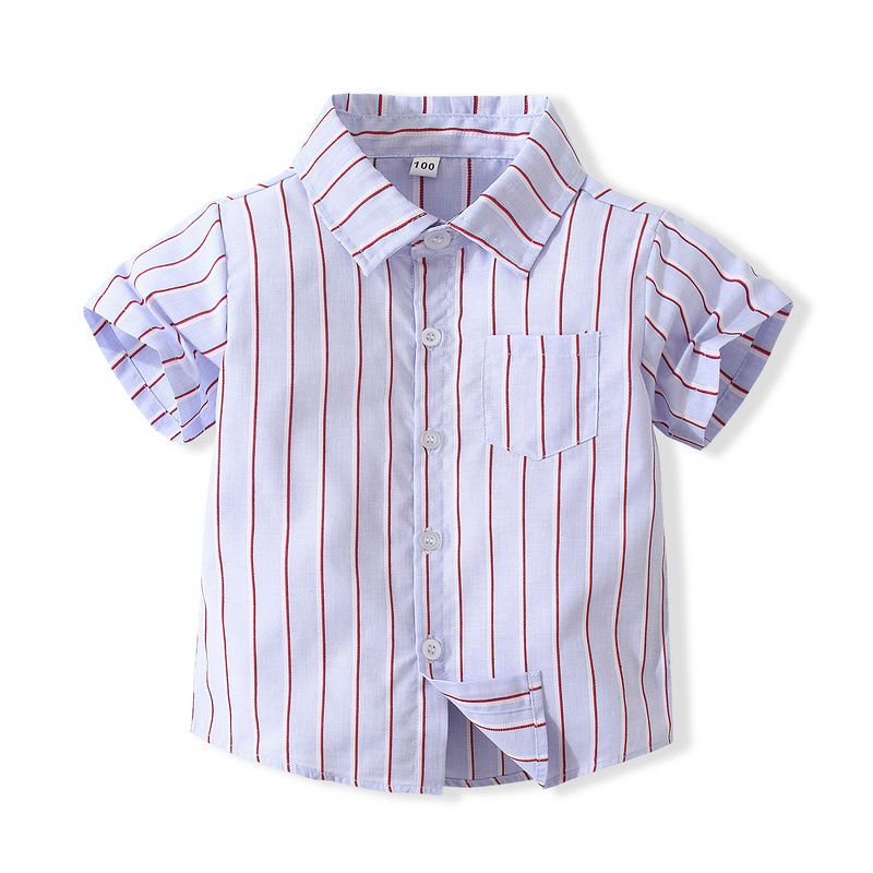 어린이 일본식 빈티지 스트라이프 셔츠 여름 캐주얼 스트라이프 면 셔츠 얇은 유행 스타일 웨스턴 스타일 라펠 탑