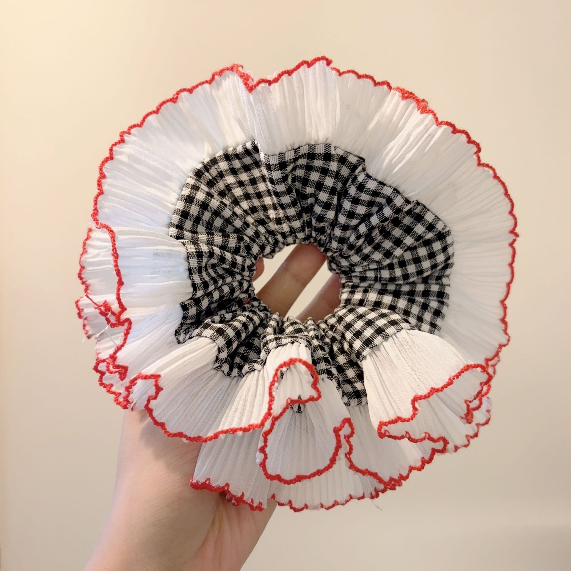 • 빨간색 격자 무늬와 빨간색 가장자리가 있는 초대형 머리끈