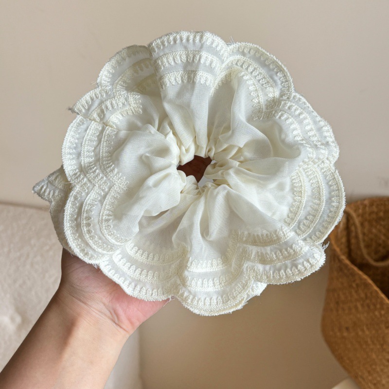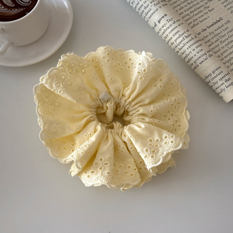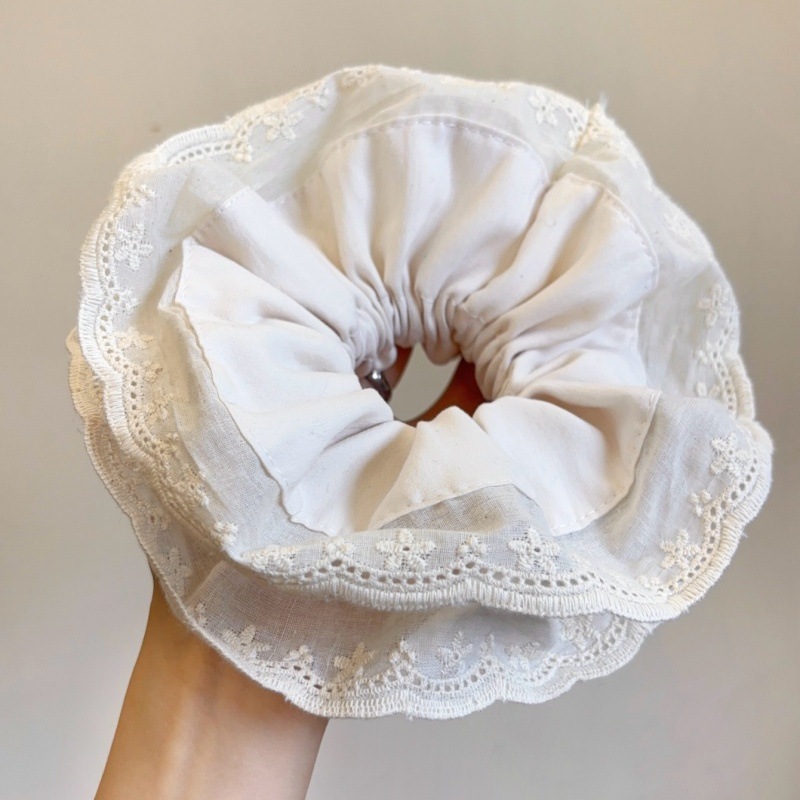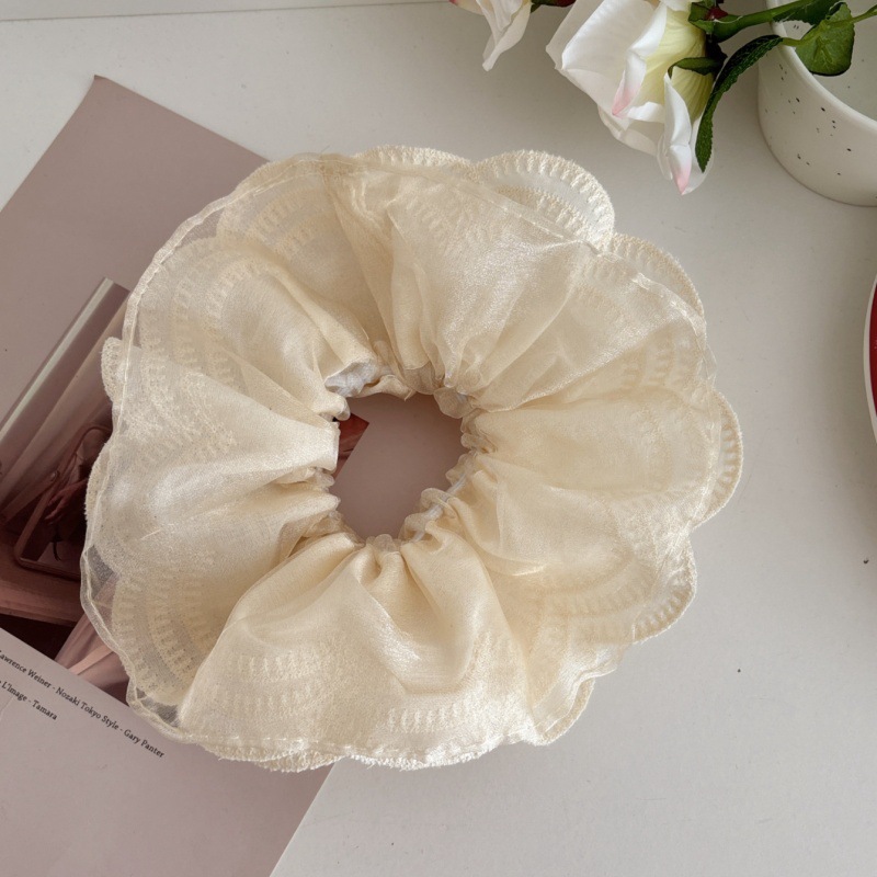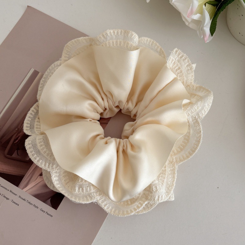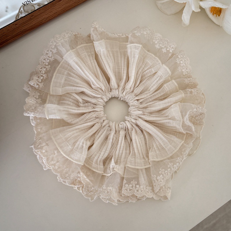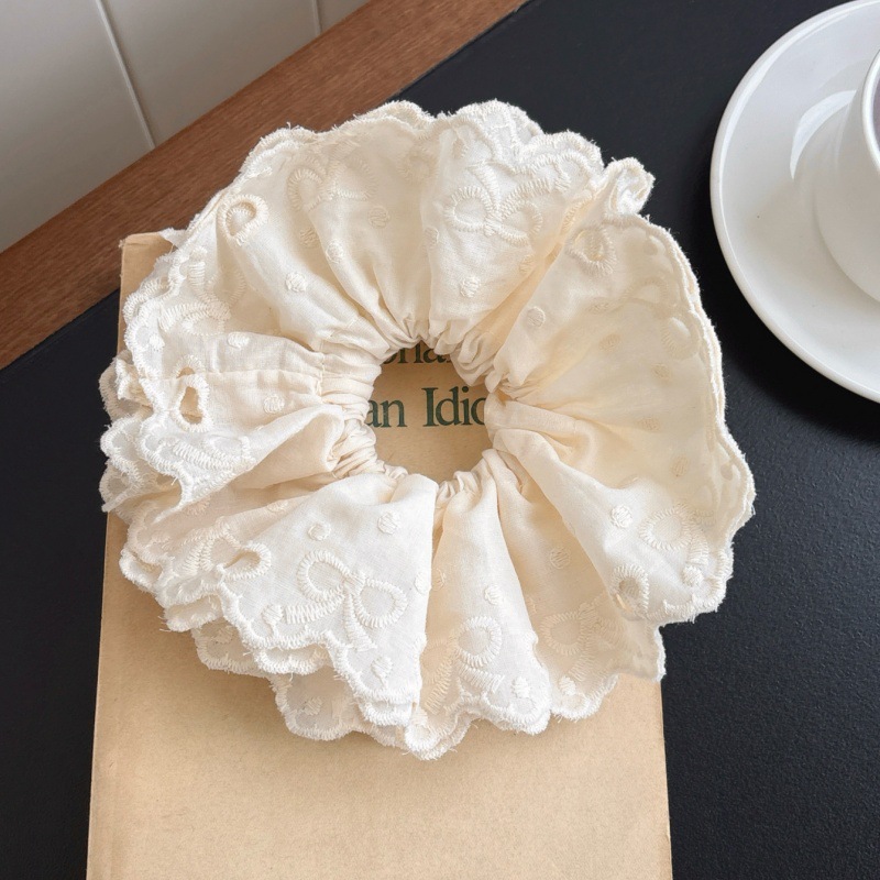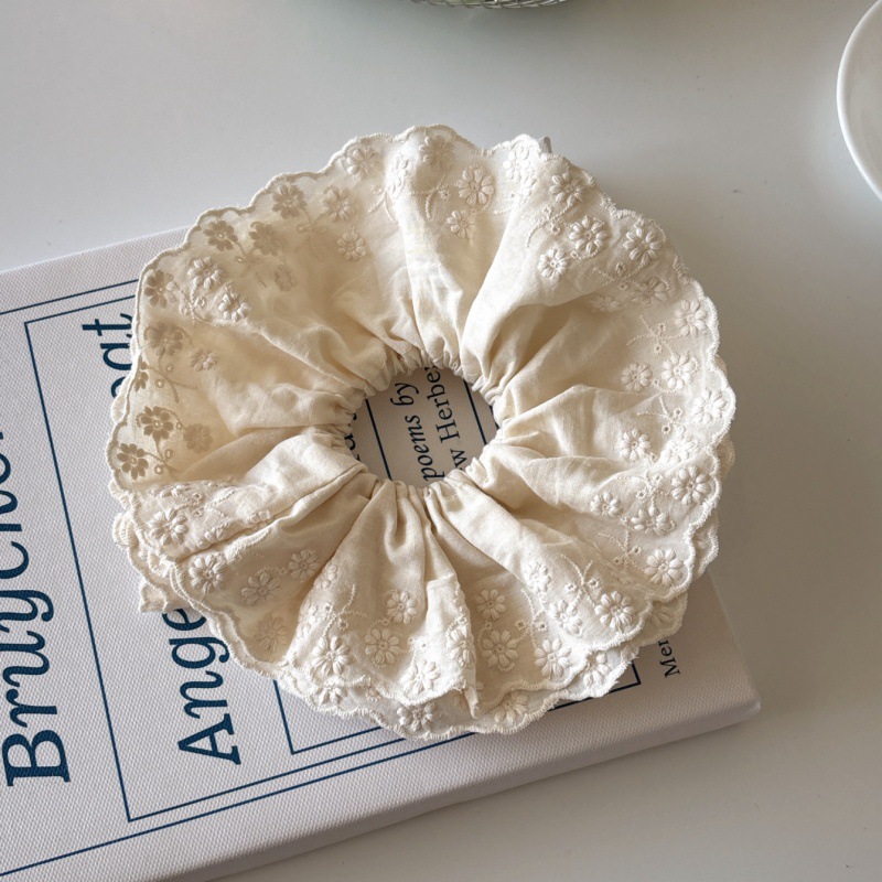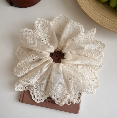 • 베이지 - 자수 레이스 오버사이즈 머리끈