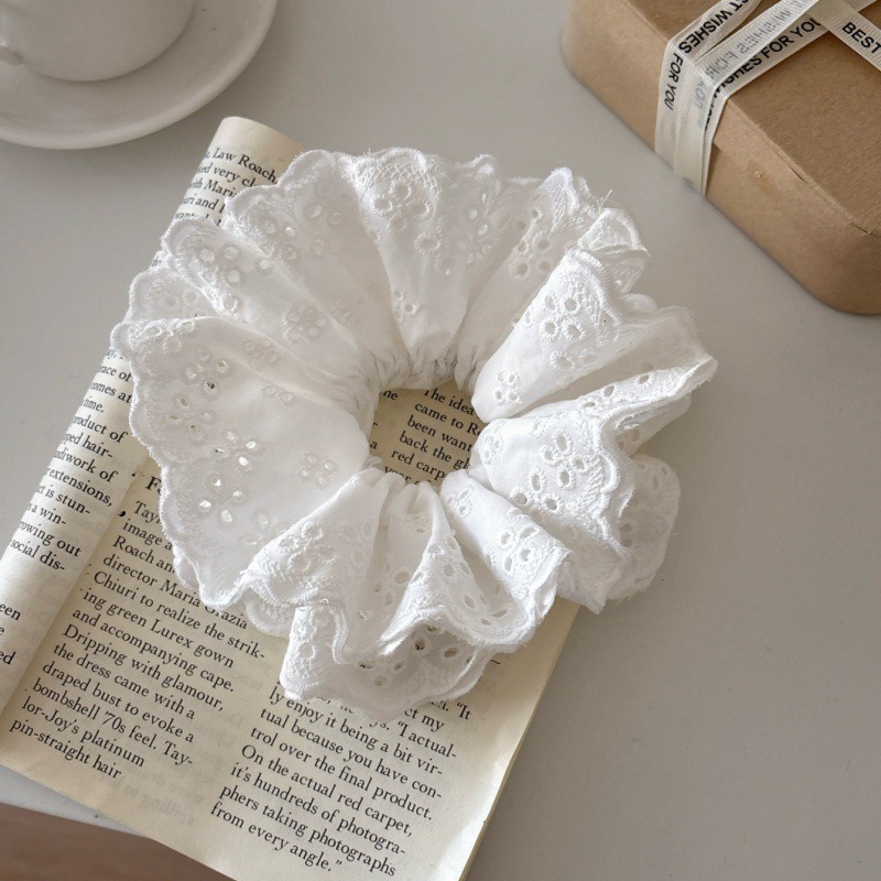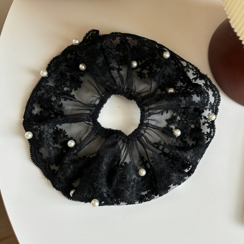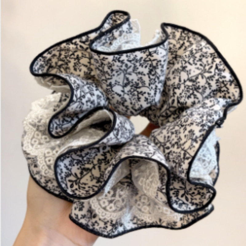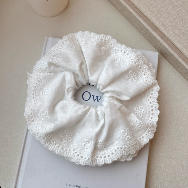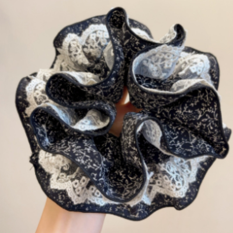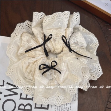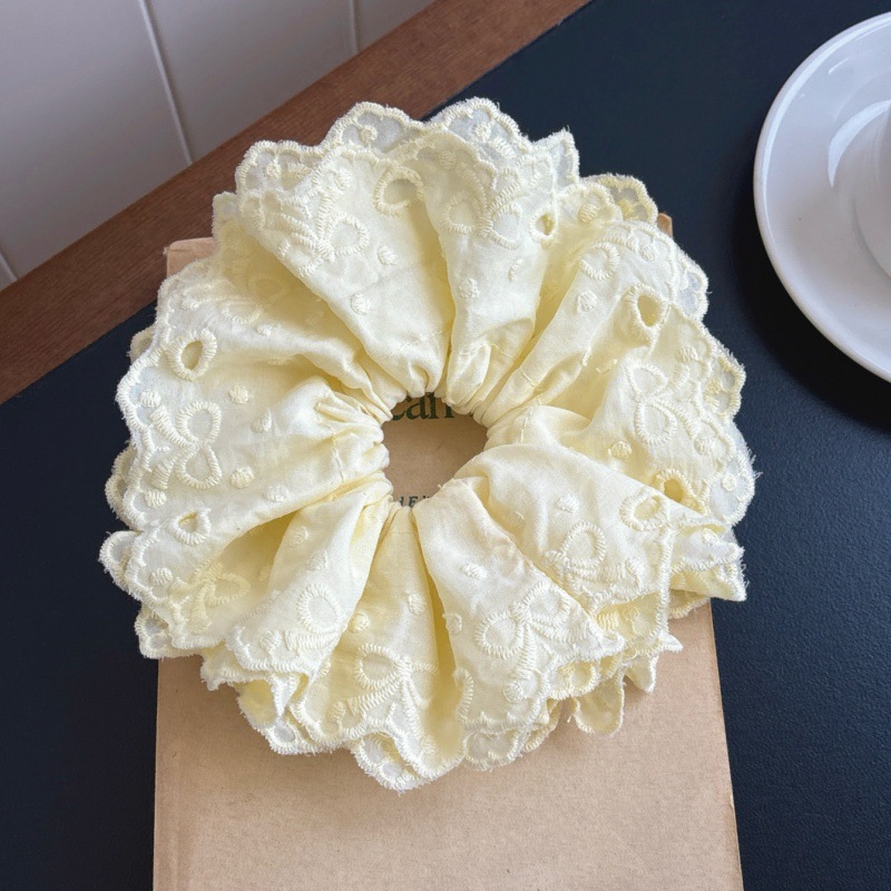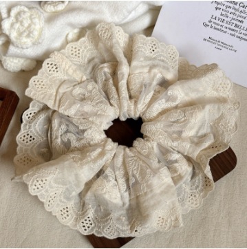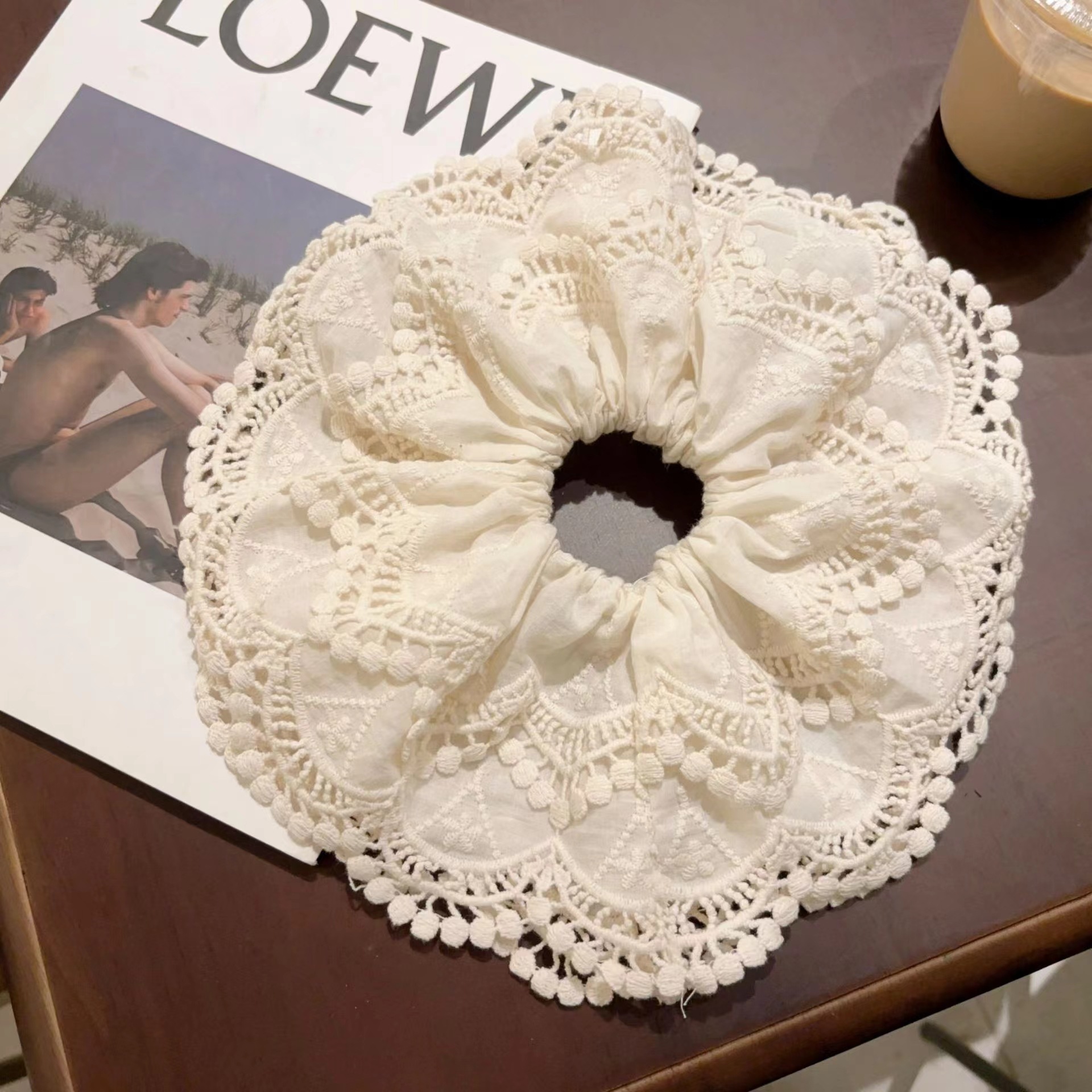 • 베이지 - 자수 레이스 오버사이즈 머리끈