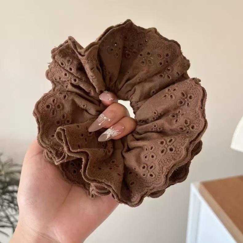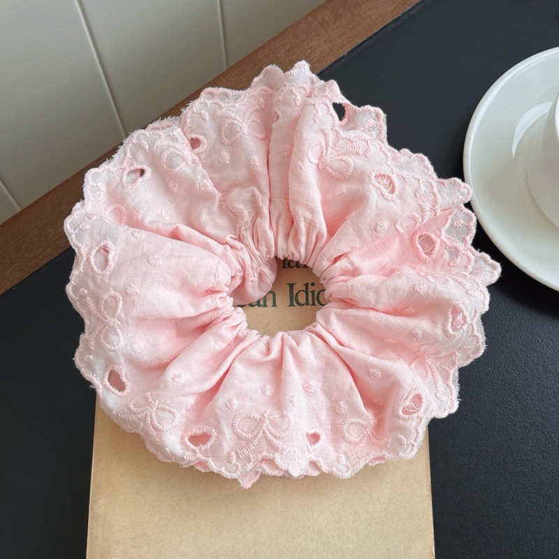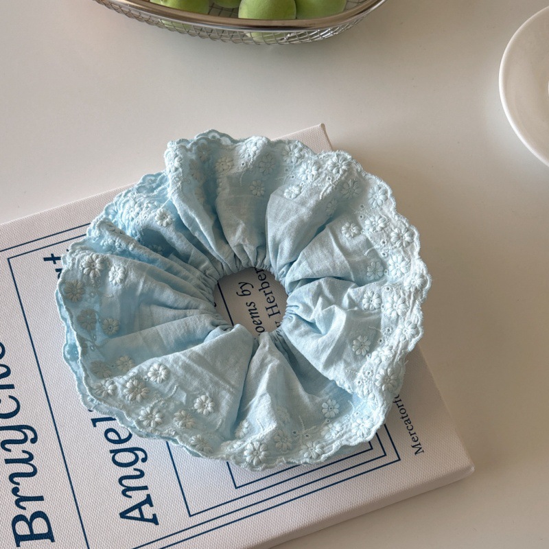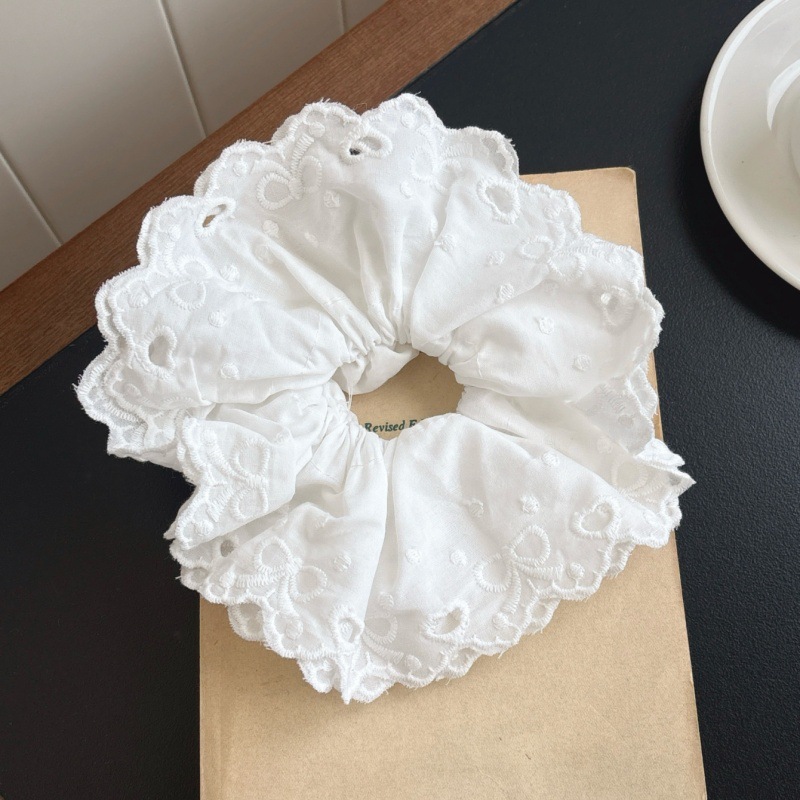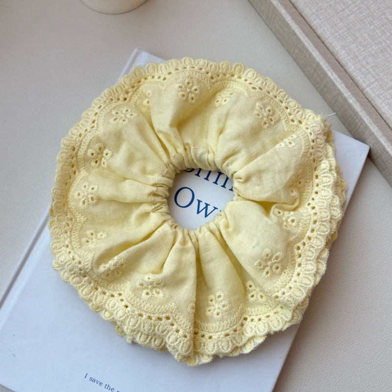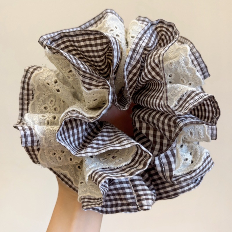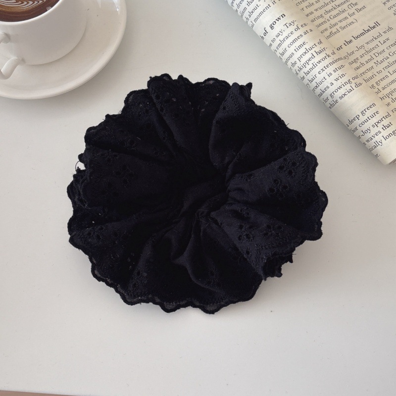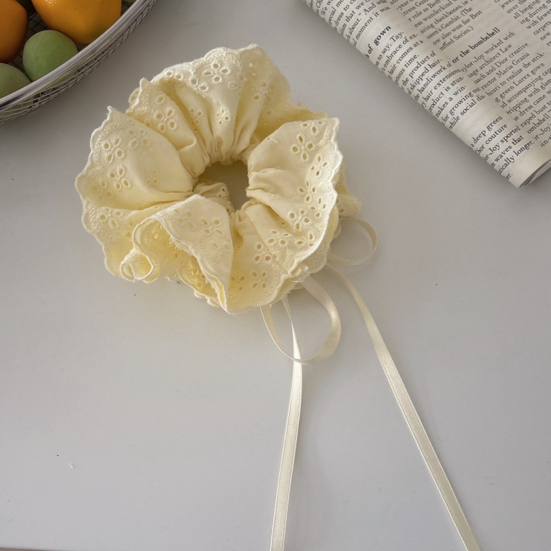 • 베이지 - 자수 레이스 오버사이즈 머리끈