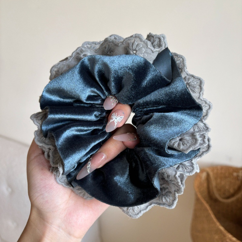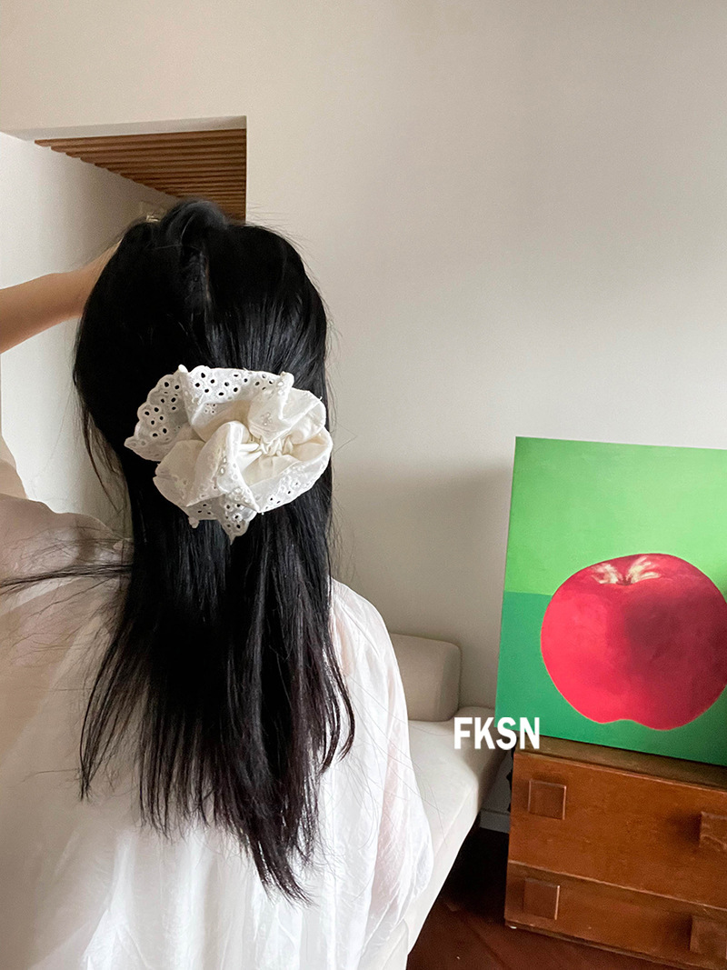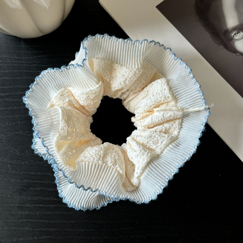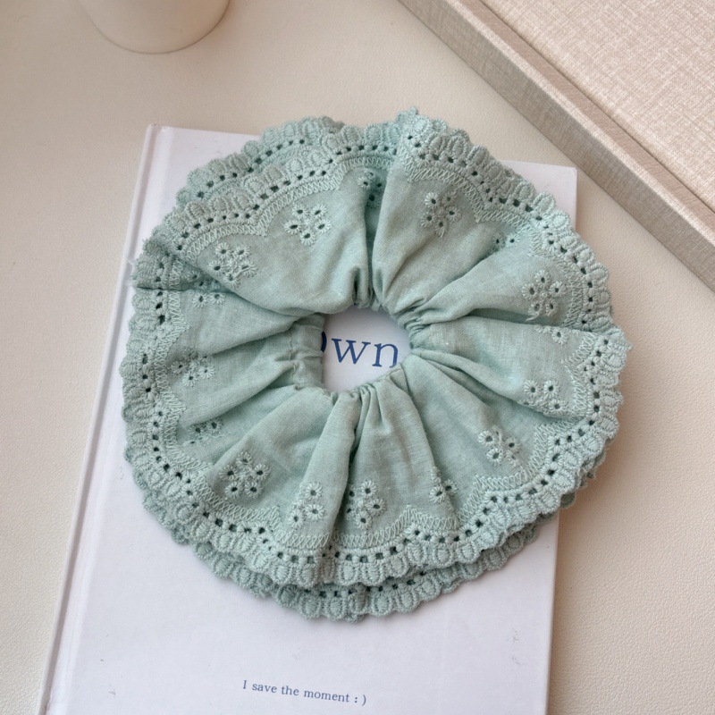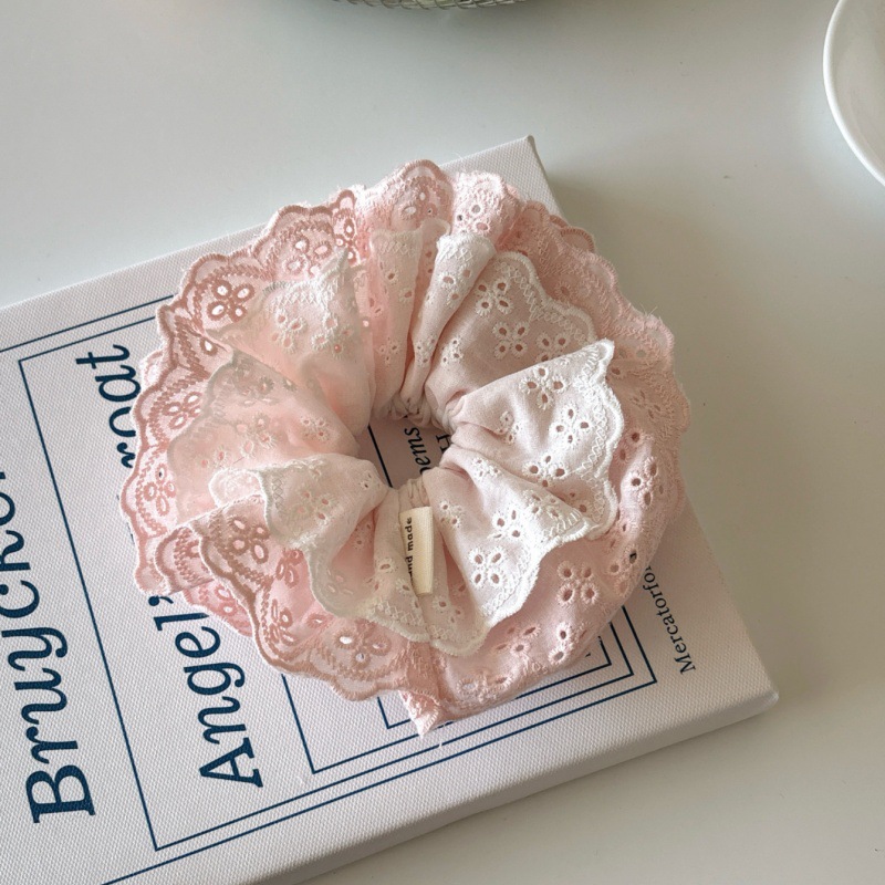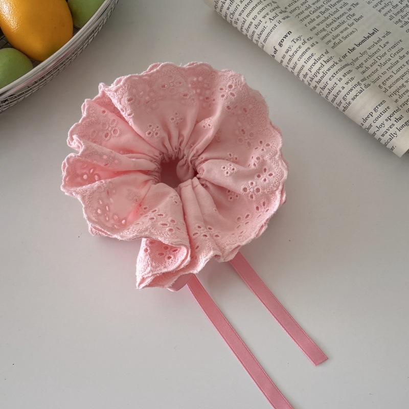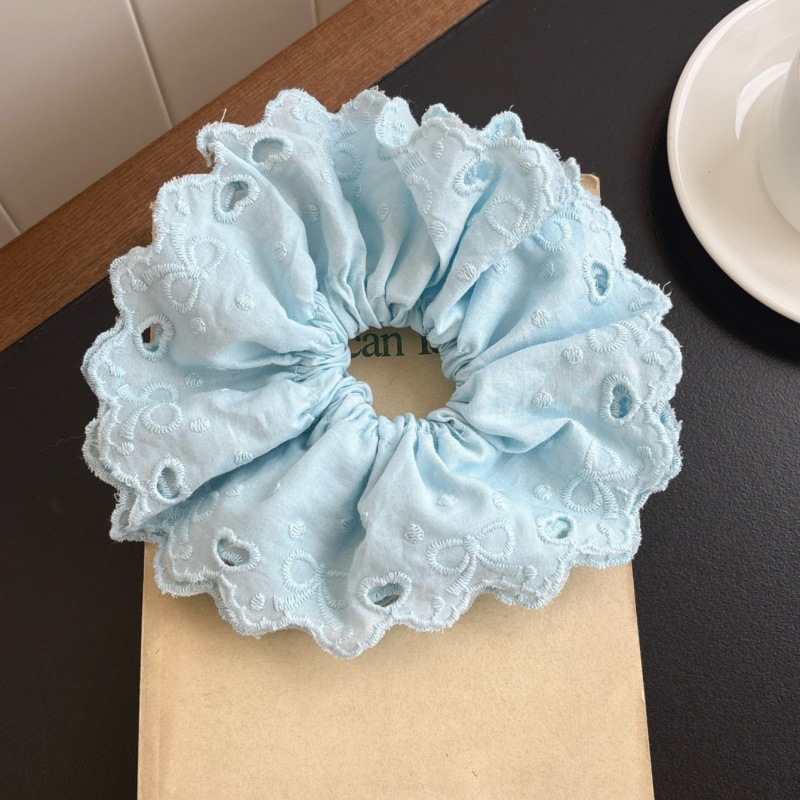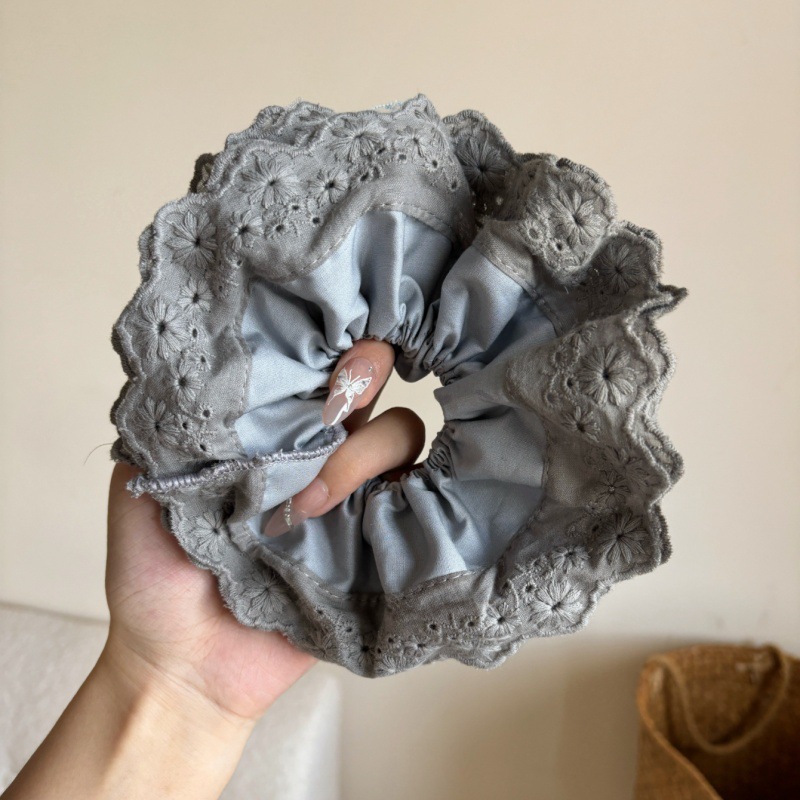 • 베이지 - 자수 레이스 오버사이즈 머리끈