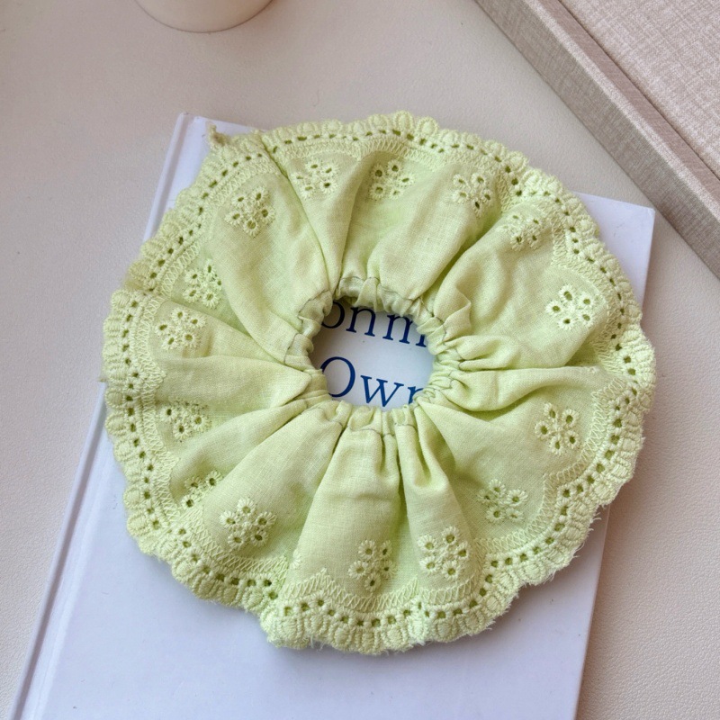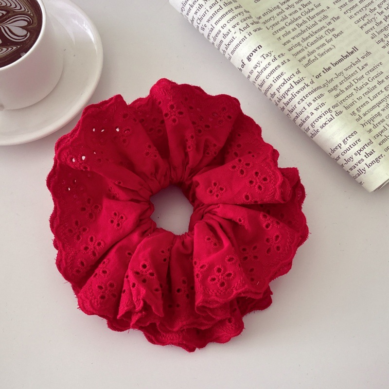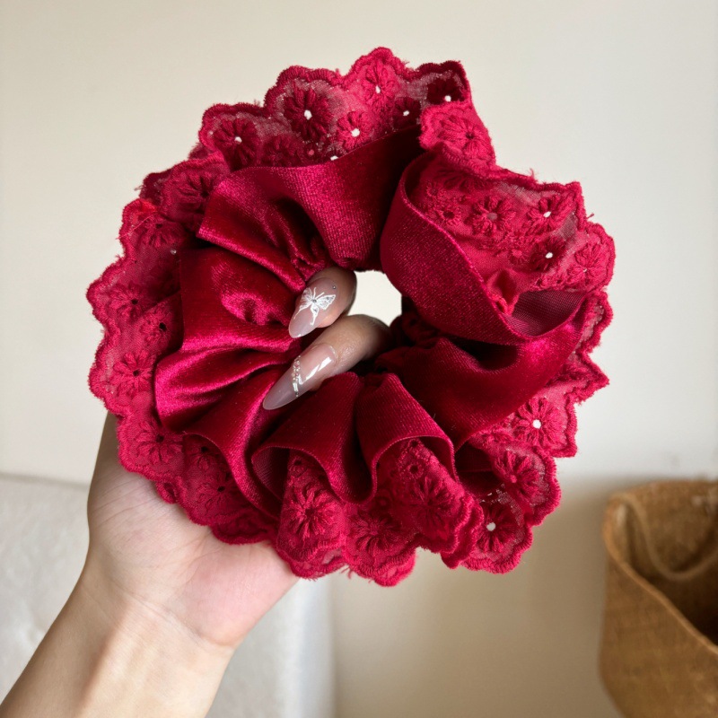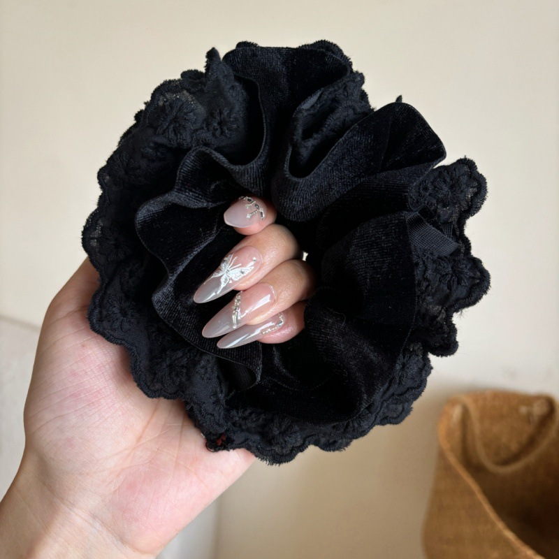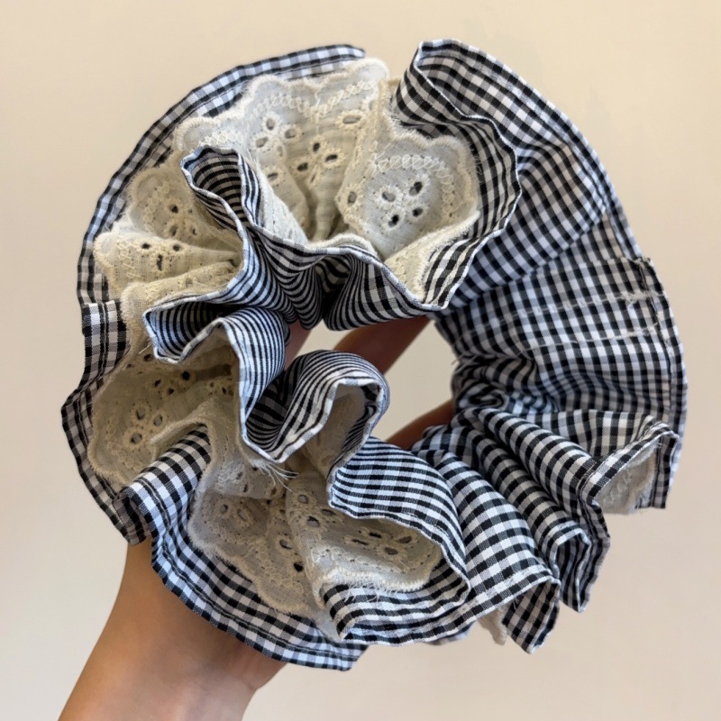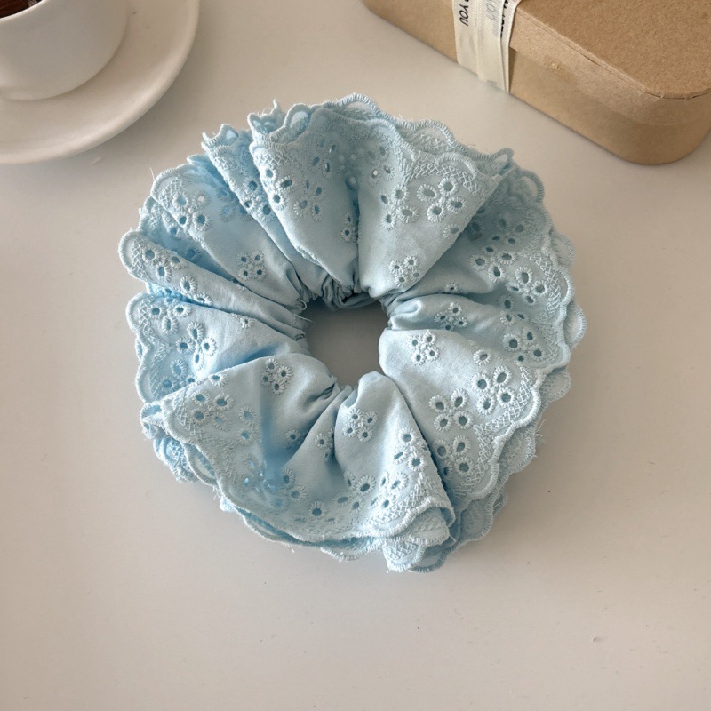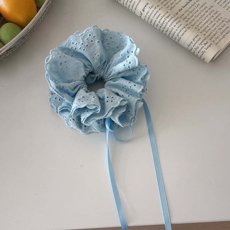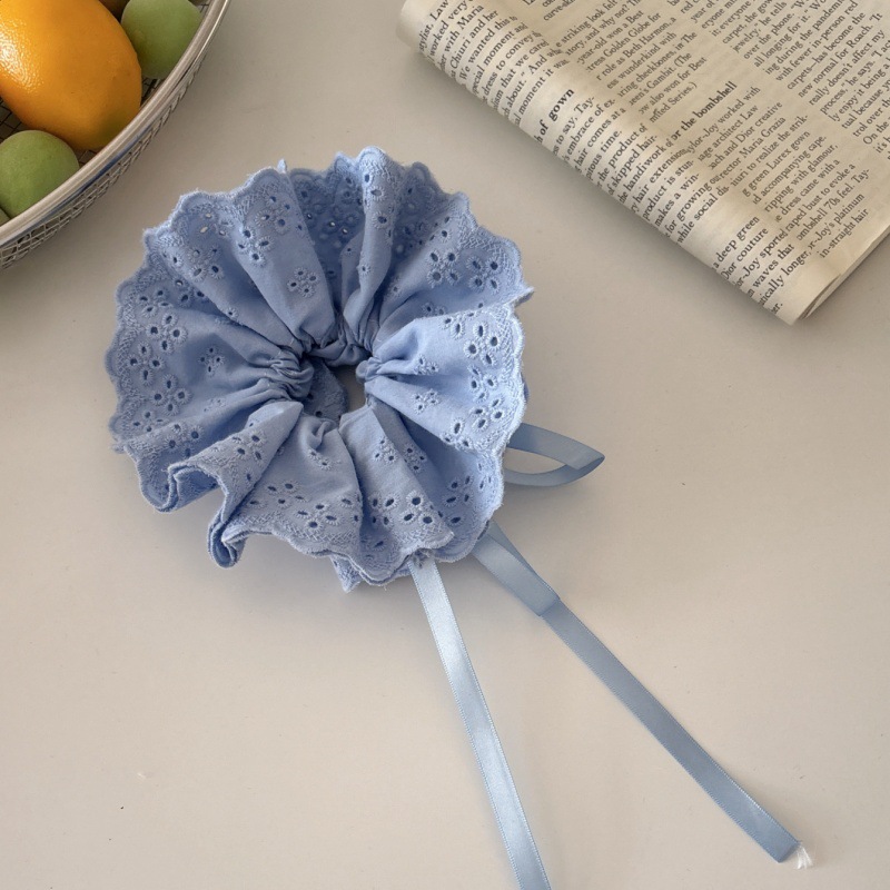 • 베이지 - 자수 레이스 오버사이즈 머리끈