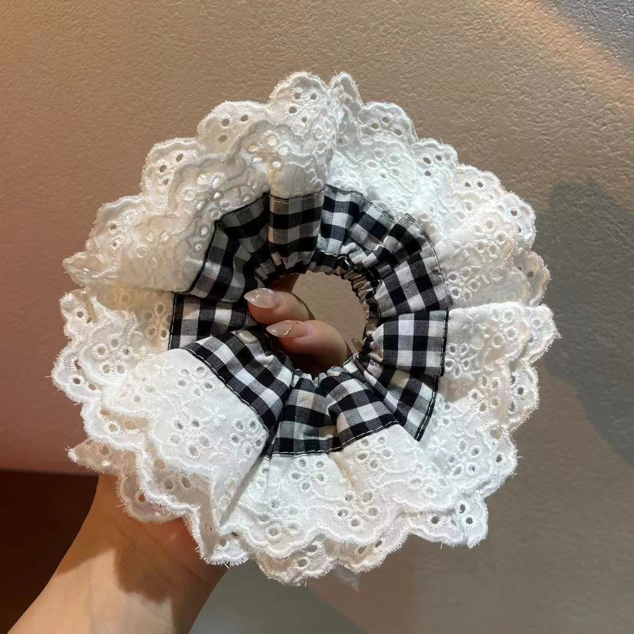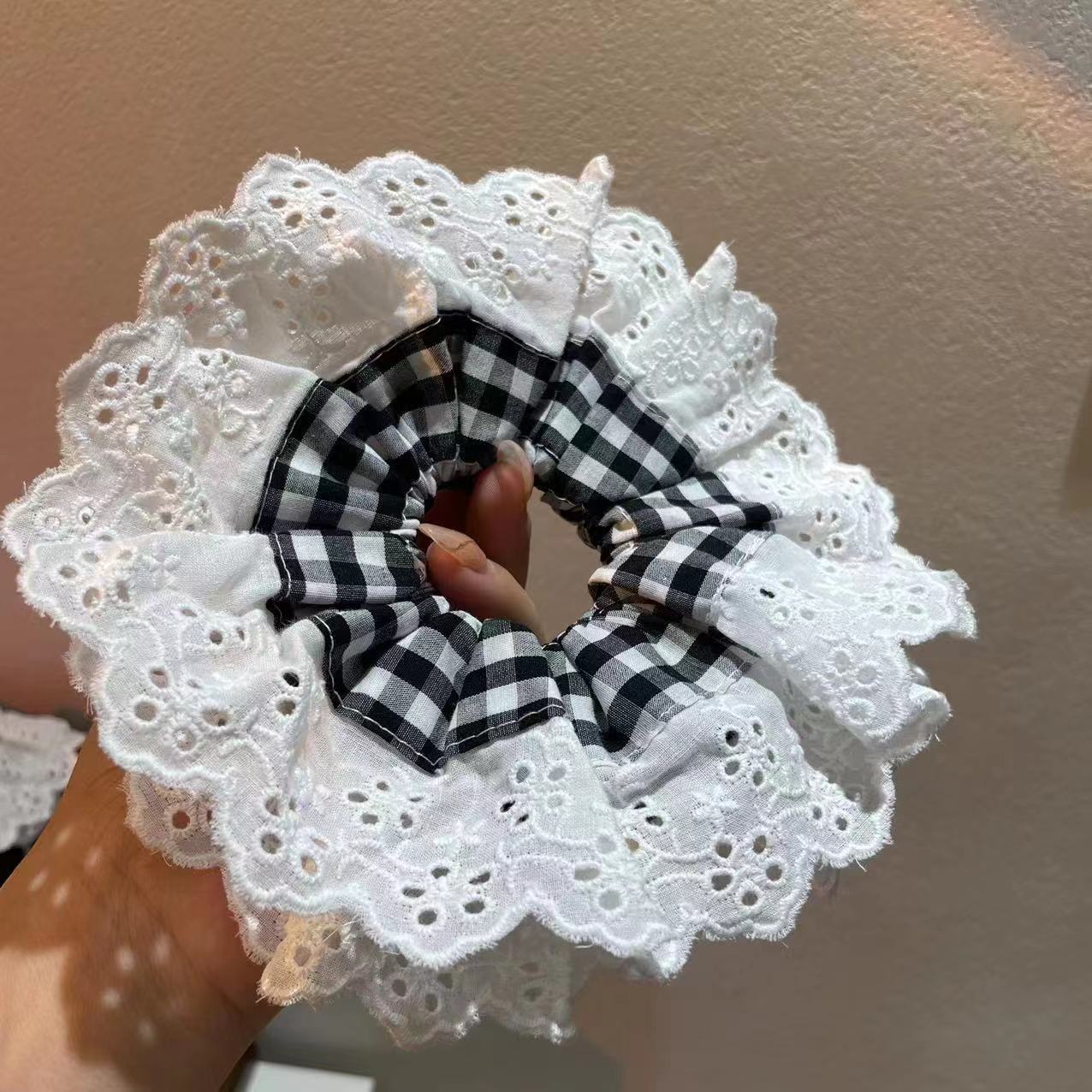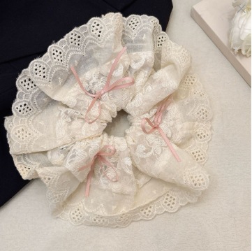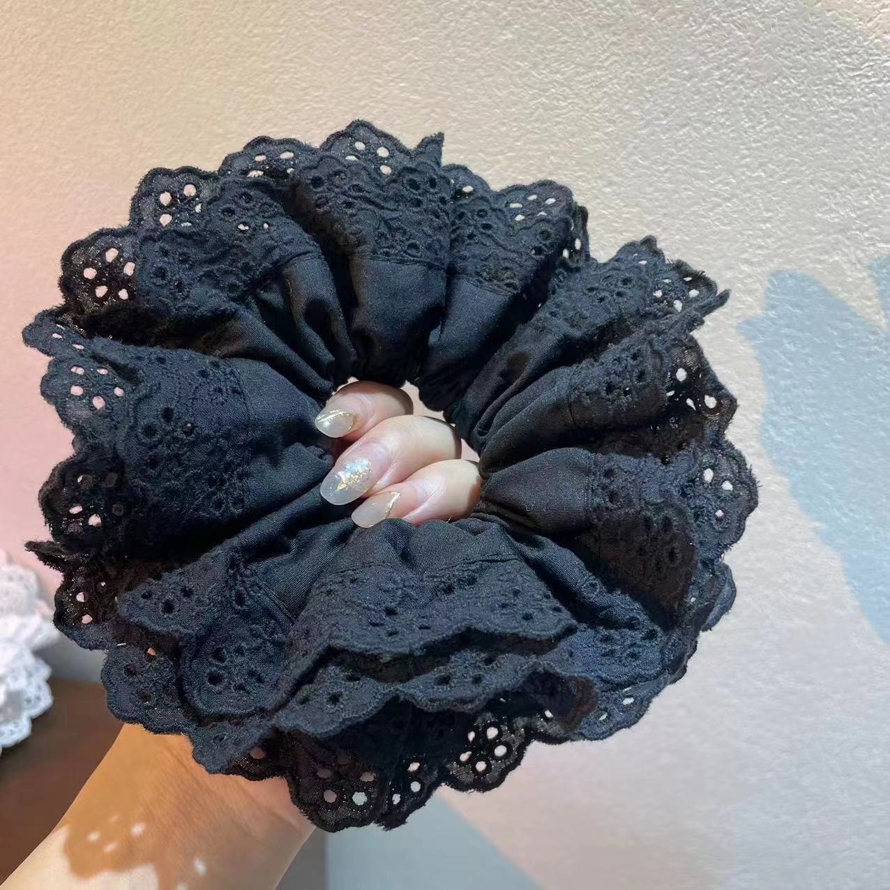 더블 레이어 대형 레이스 헤어 링 프렌치 로맨틱 중공 결장 링 헤어 액세서리 여성용 로리타 스타일 헤어 로프