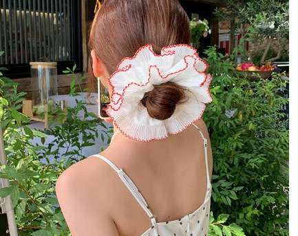 • 흰색 빨간색 가장자리 오버 사이즈 헤어 링