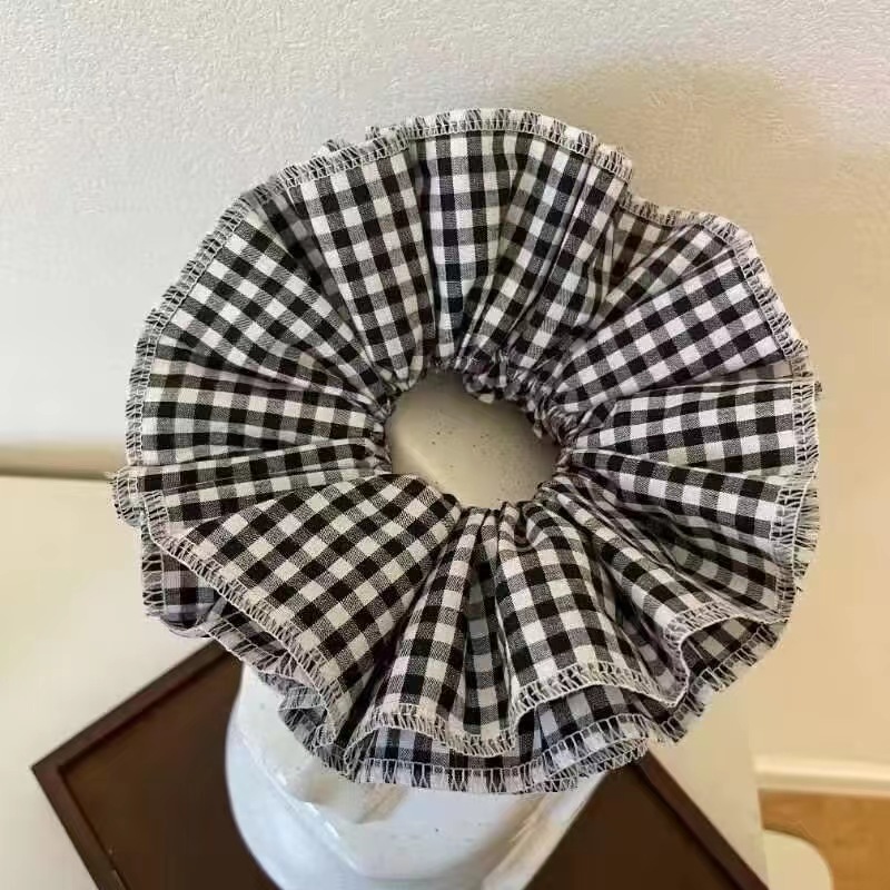 • 빨간색 가장자리가 있는 검은색 격자 무늬 오버사이즈 머리끈