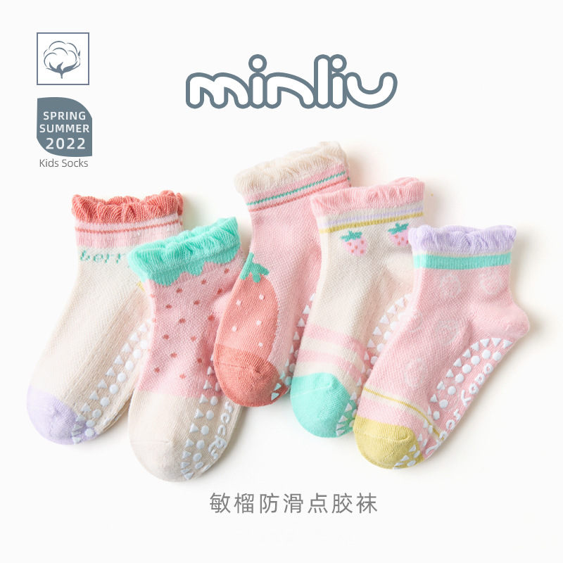 두리안 아기 트램폴린 어린이 양말 메쉬 봄과 여름 양말 분배 미끄럼 방지 바닥 양말 소녀 보트 아기 양말