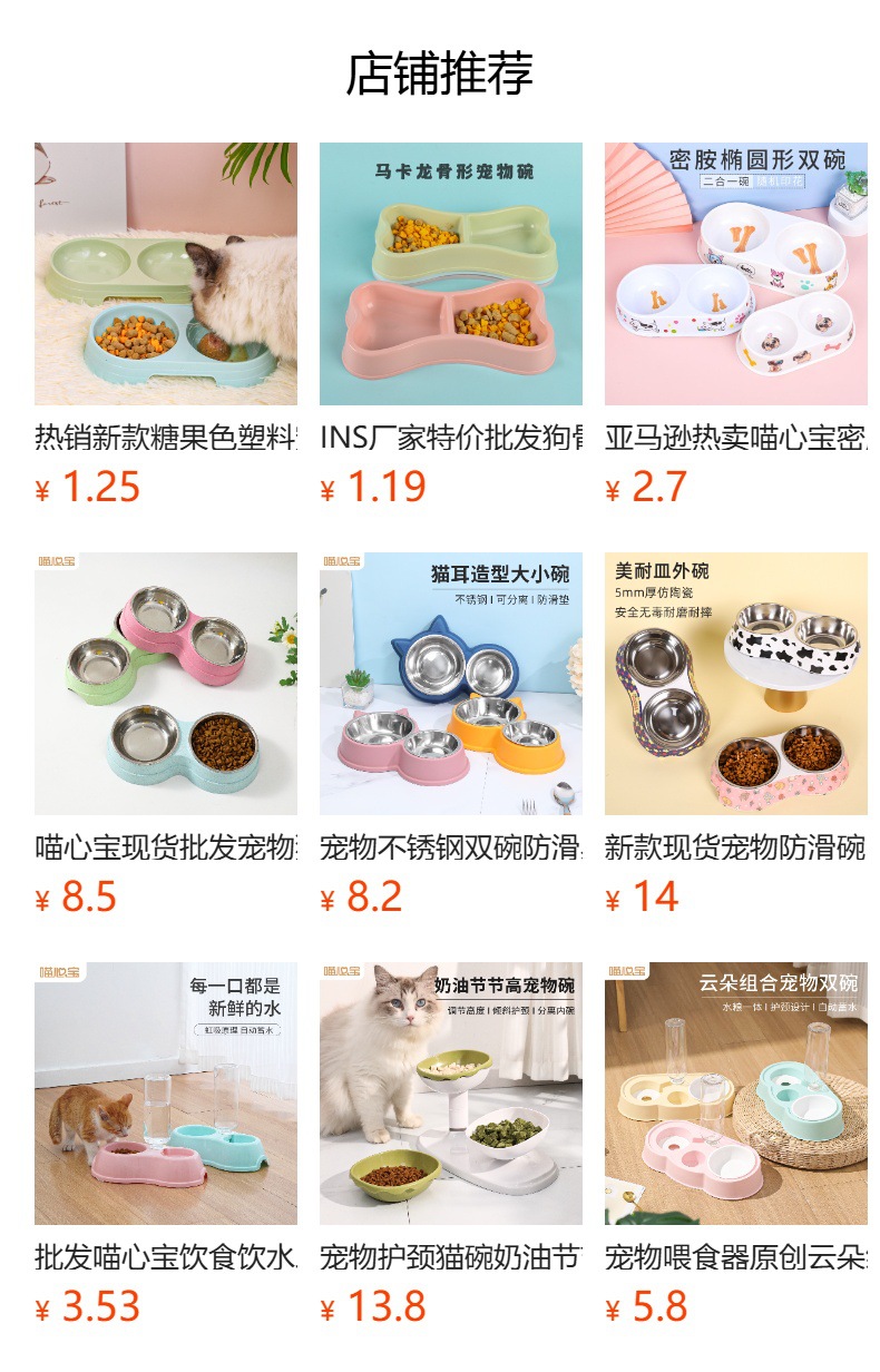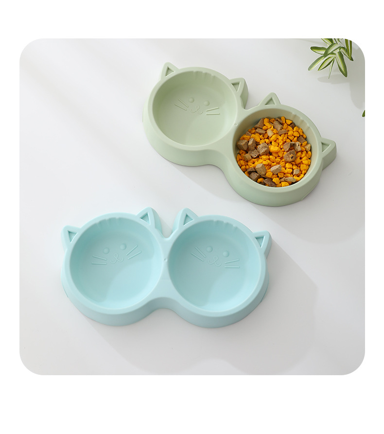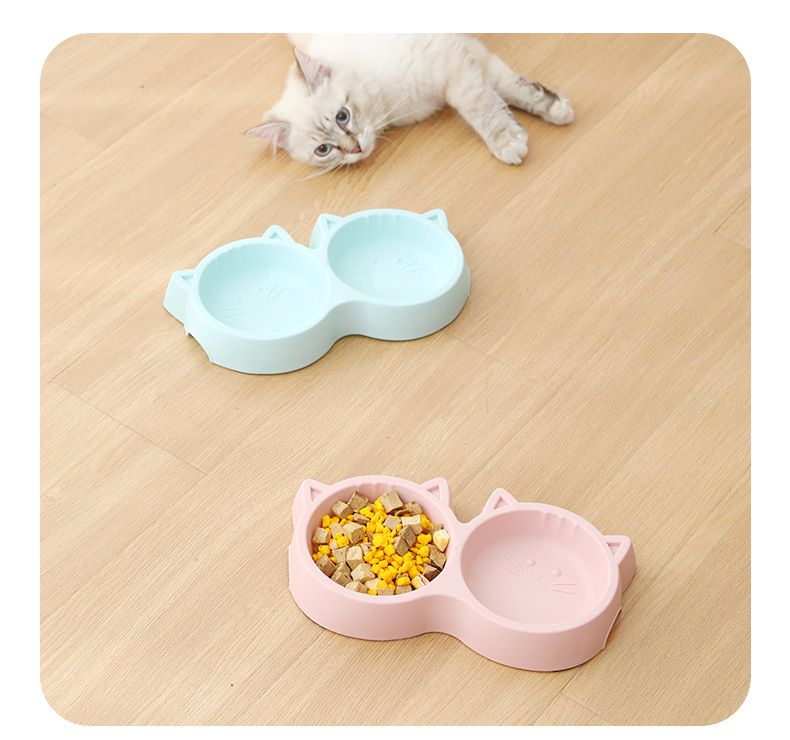 야옹 하트 보물 고양이 그릇 아마존 플라스틱 고양이 얼굴 애완 동물 더블 그릇 외국 무역 애완 동물 사발 재고 도매스토어 가기
