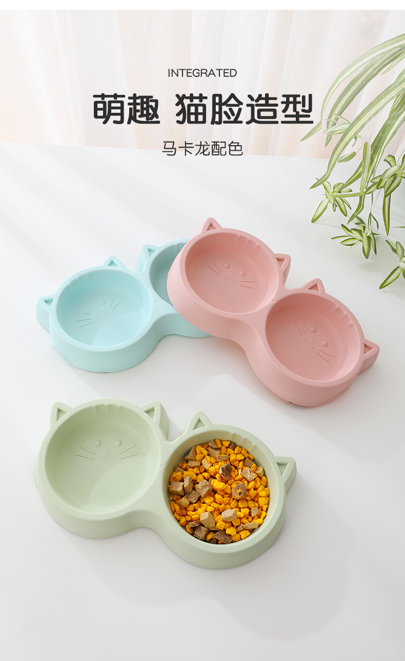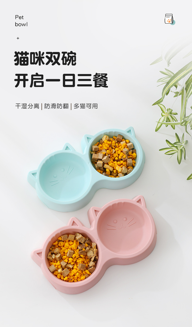 야옹 하트 보물 고양이 그릇 아마존 플라스틱 고양이 얼굴 애완 동물 더블 그릇 외국 무역 애완 동물 사발 재고 도매
