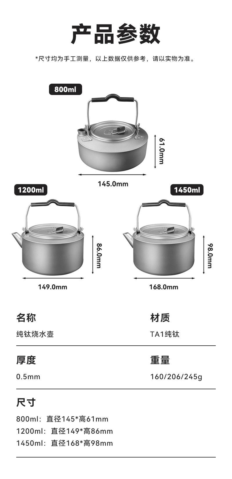 순수 티타늄 주전자, 가볍고 휴대 가능하며 접이식이며 두껍고 내구성이 뛰어난 식품 등급 야외 캠핑용 가정용 물 끓이기 주전자, 해외 도매스토어 가기