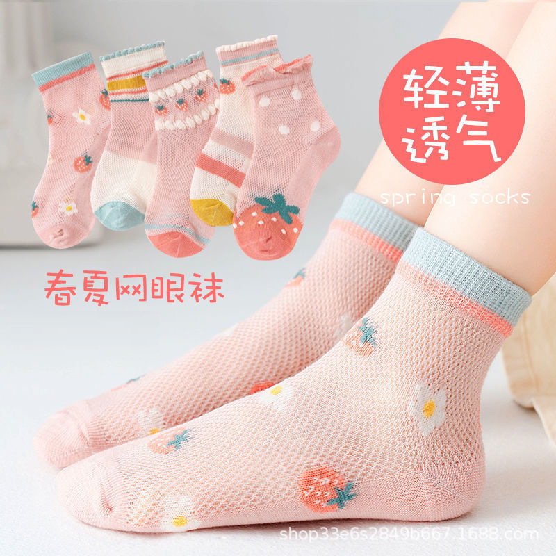 여자 양말 봄과 여름 얇은 어린이 면화 양말 아기 양말 여름 큰 어린이 공주 레이스 메쉬 양말 도매