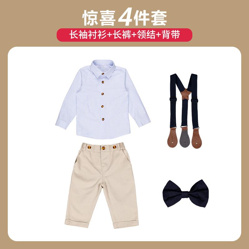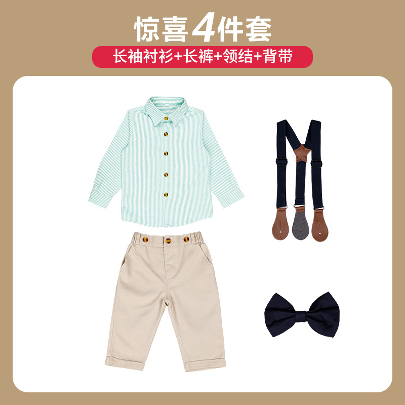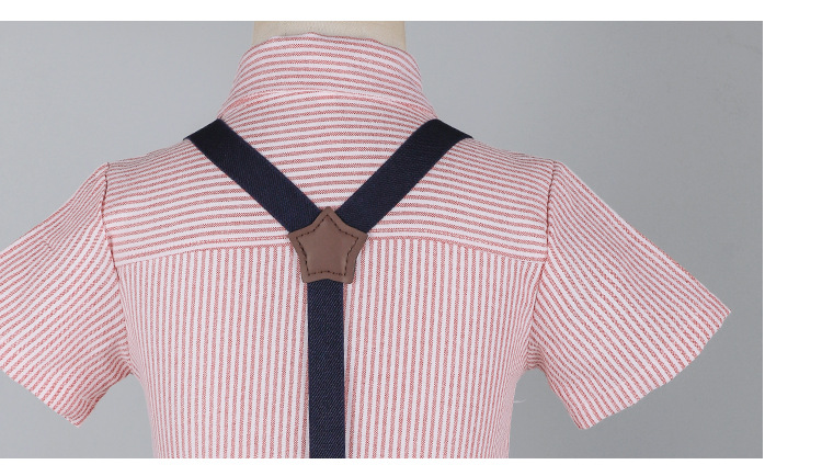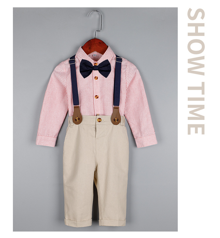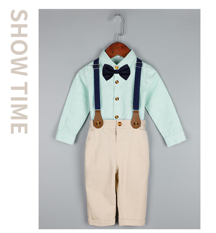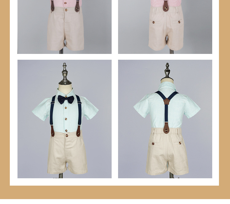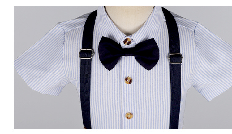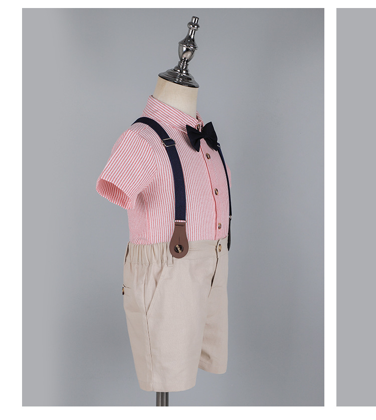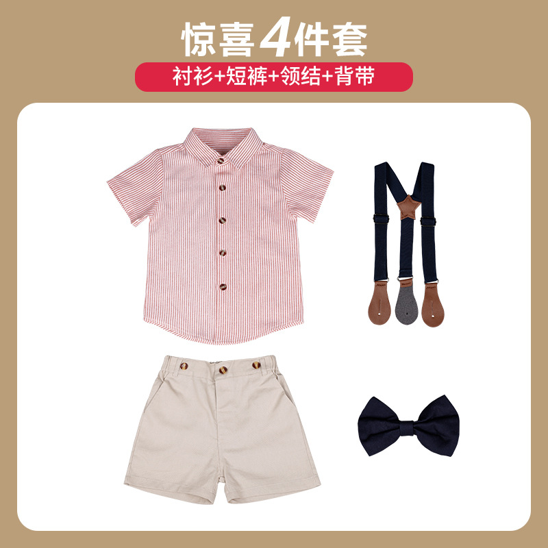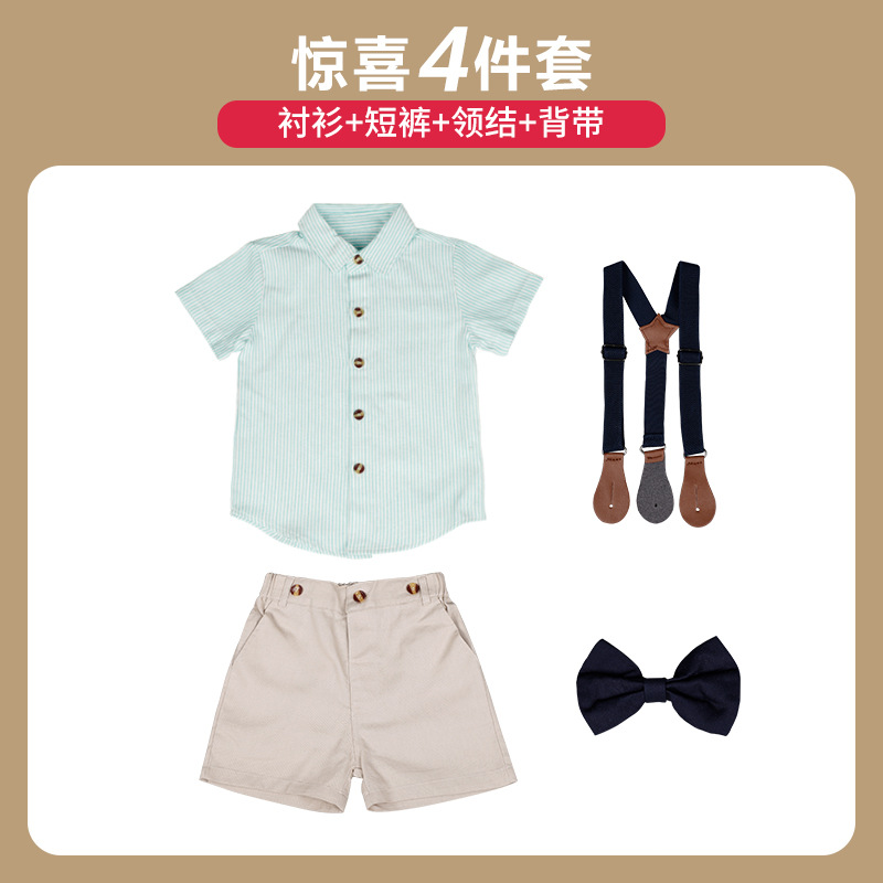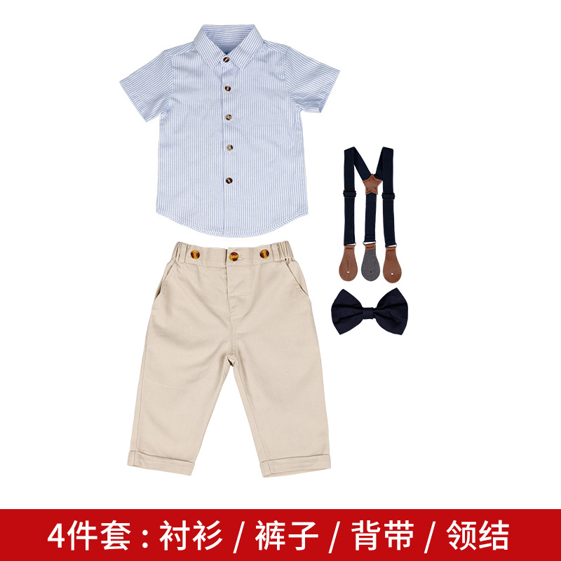 어린이 원피스 여름 새 남아 스트라이프 오버롤 투피스 세트 아기의 생일 반팔 셔츠 세트