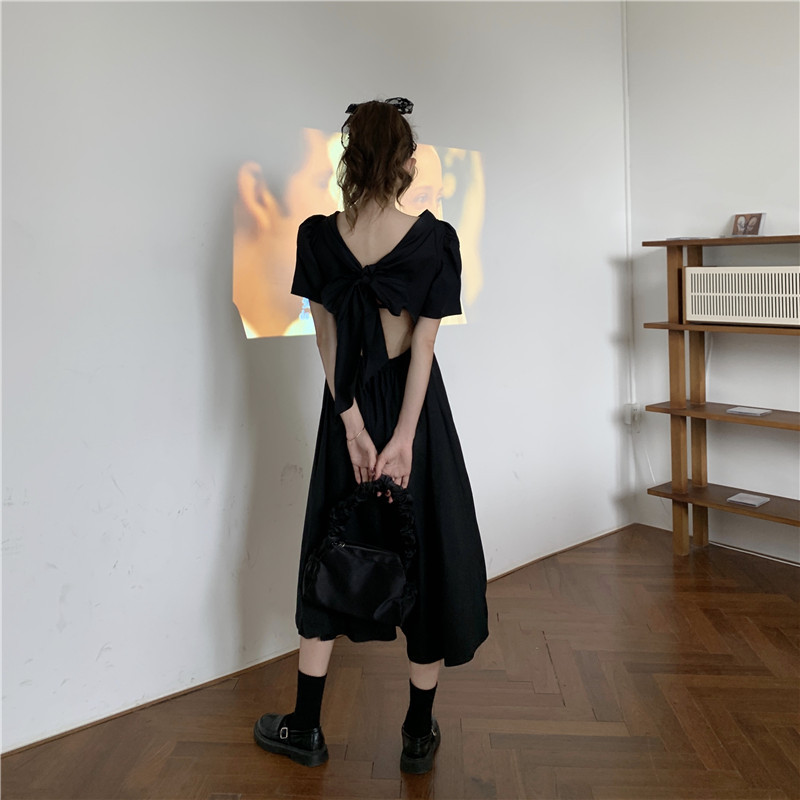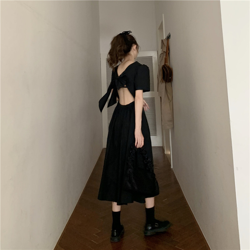 프랑스 틈새 백 중공 활 스커트 슈퍼 요정 모리 디자인 감각 허리 타이트 기질 화이트 원피스스토어 가기