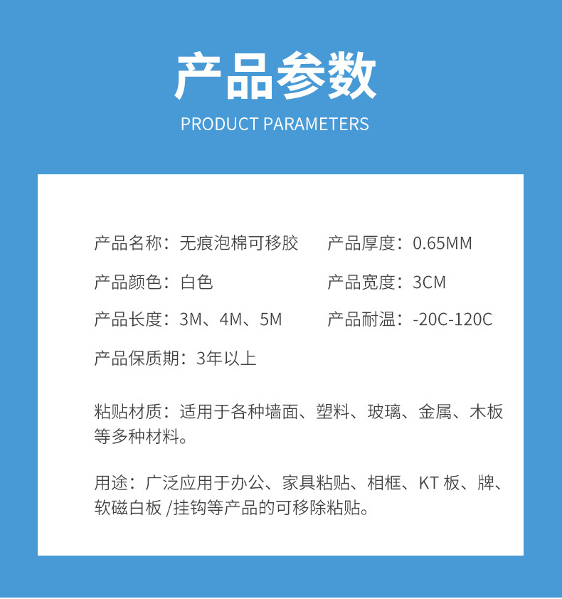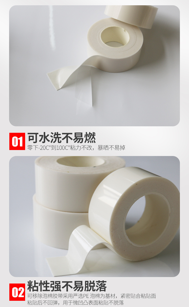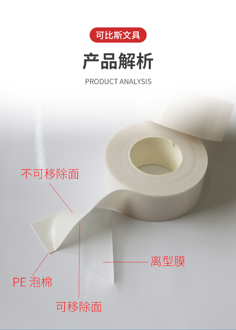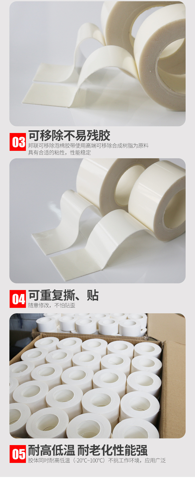 탈착식 폼 양면 접착제는 벽을 손상시키지 않으며, 잔류 물이 없으며, 찢어지기 쉽고, PE 접착 테이프, 양면 착탈식 가정용 접착 테이프