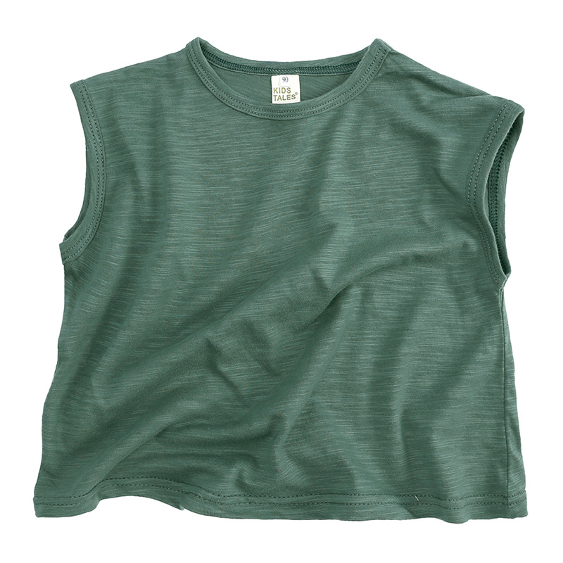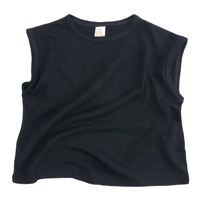 【款式】韩版儿童背心夏季软糯竹节棉无袖落肩T恤马甲男女童圆领外穿
