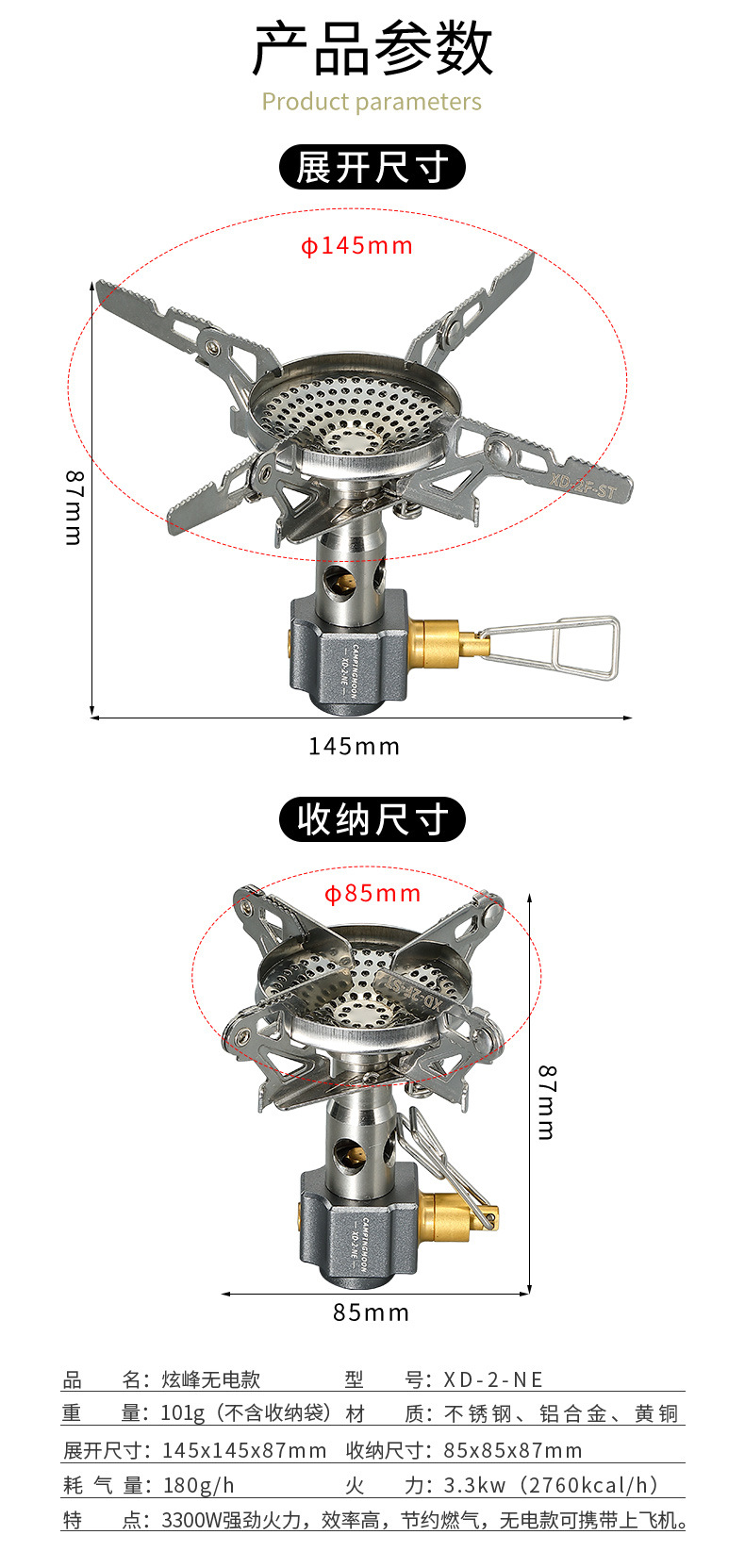 캠핑문 고성능 캠핑 격렬한 스토브 헤드 캠핑 장비 휴대용 플랫 가스 고고도 가스 스토브