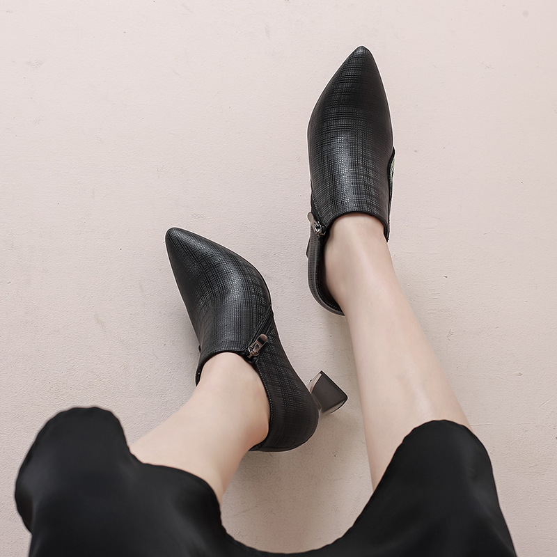 Huizhou 여성을위한 다목적 우아한 사무실 전문 단일 신발 2024 봄 라인 석 지적 발가락 복고풍 두꺼운 뒤꿈치 여성 신발 패션스토어 가기