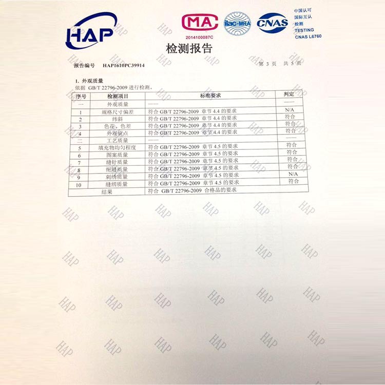 睡袋检测报告: