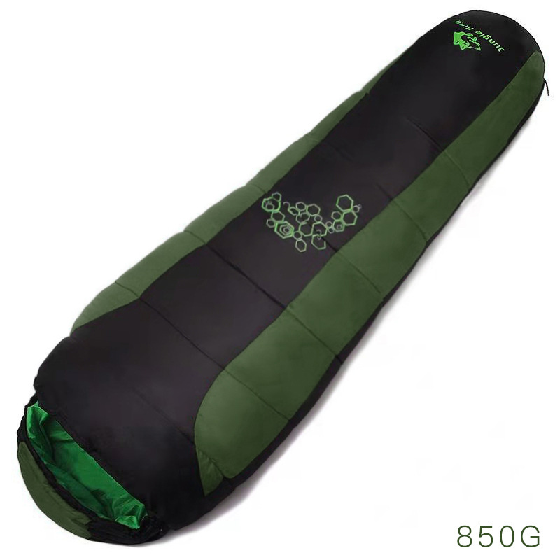 睡袋结构:帽兜、拉链保护带、领围(一左一右可拼接)