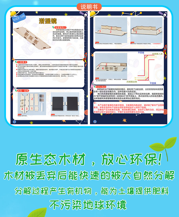 어린이 과학 작은 실험 거울 반사 수제 작은 발명 과학 및 기술 작은 만들기 DIY 잠망경 과학 및 교육 완구스토어 가기