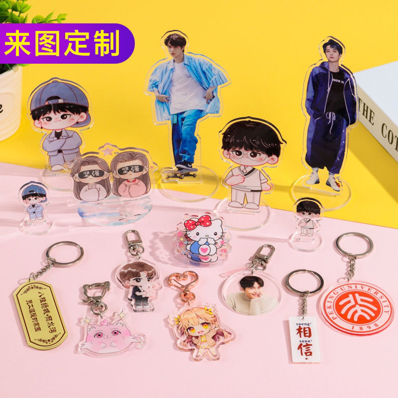 아크릴 키 체인 펜던트 도매 diy 초상화 텍스트 키 링 만화 장식품 스타 스탠드 키 체인스토어 가기