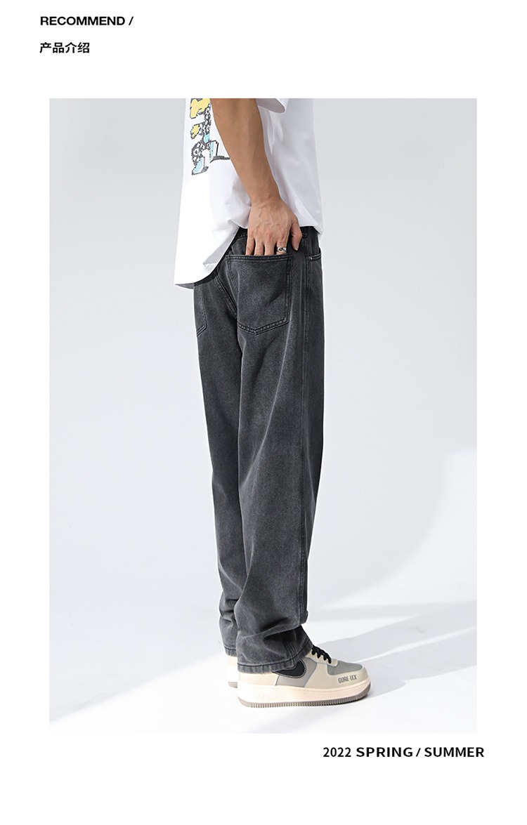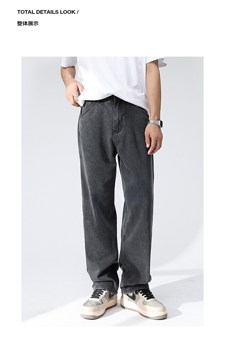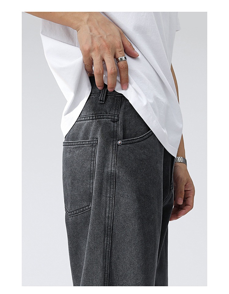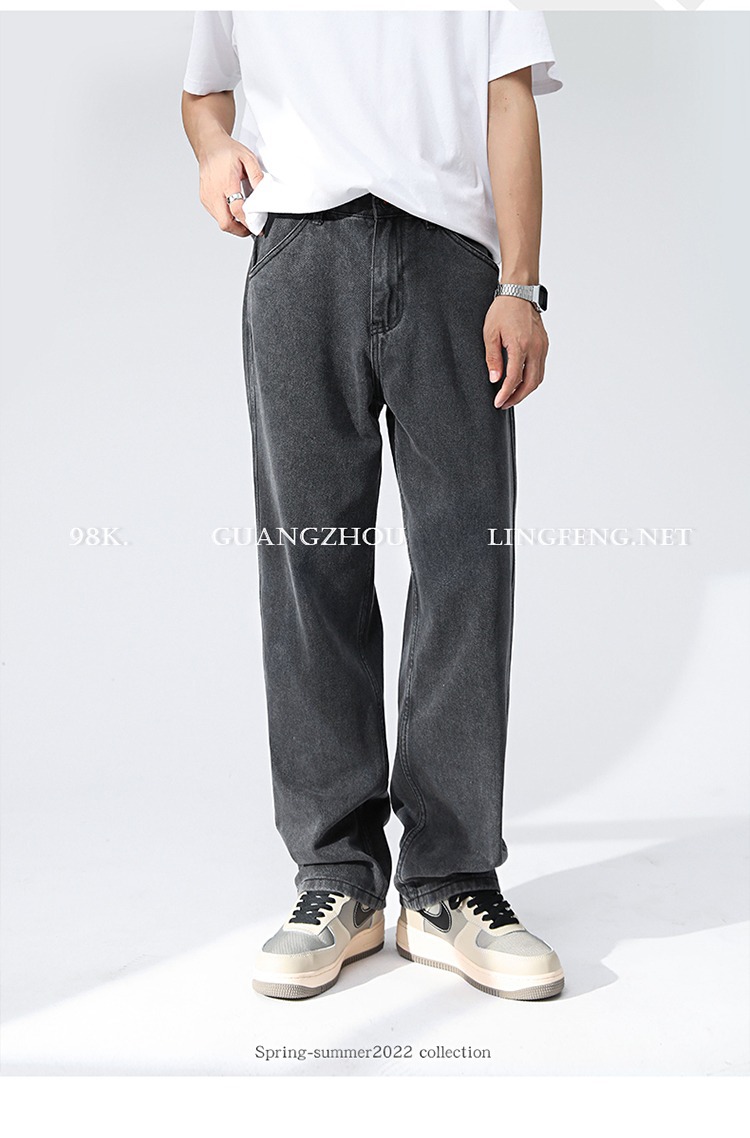 OTTB 남성복 | 광저우 레트로 워시 청소년 Mopping 와이드 레그 청바지 남성 캐주얼 루즈 남성 스트레이트 바지