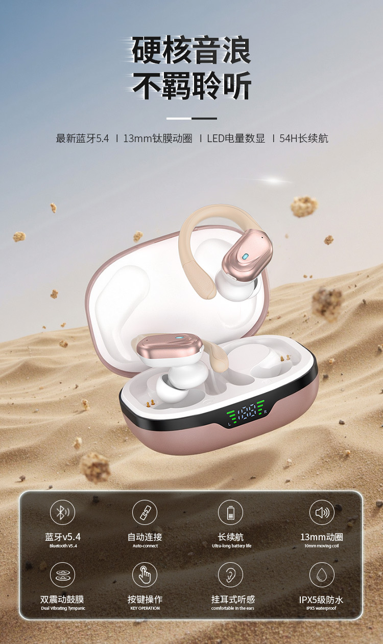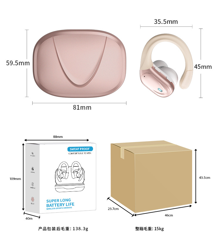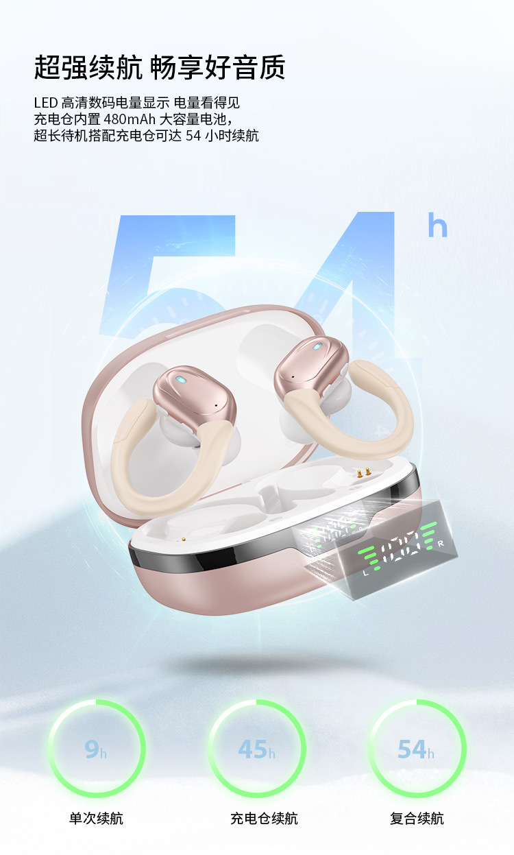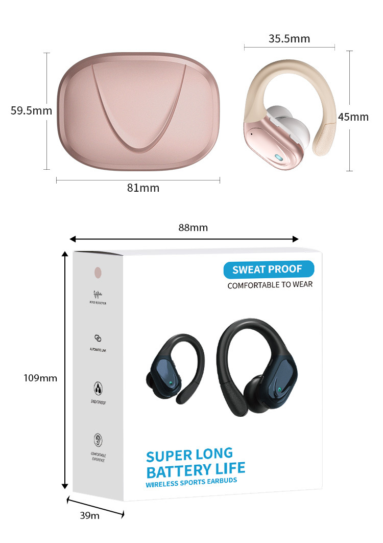 맞춤형 스마트 통화 클리어 노이즈 감소 경량 귀 매달린 무선 헤드셋 장수 및 대용량 블루투스 헤드셋