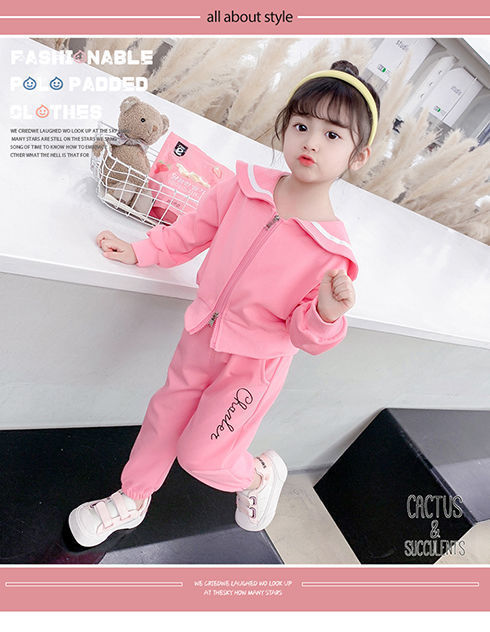 여성 아기 봄과 가을 세트 2022 새로운 어린이 한국 소녀 외국 스타일 조끼 2 피스 어린이 튀김 거리 옷