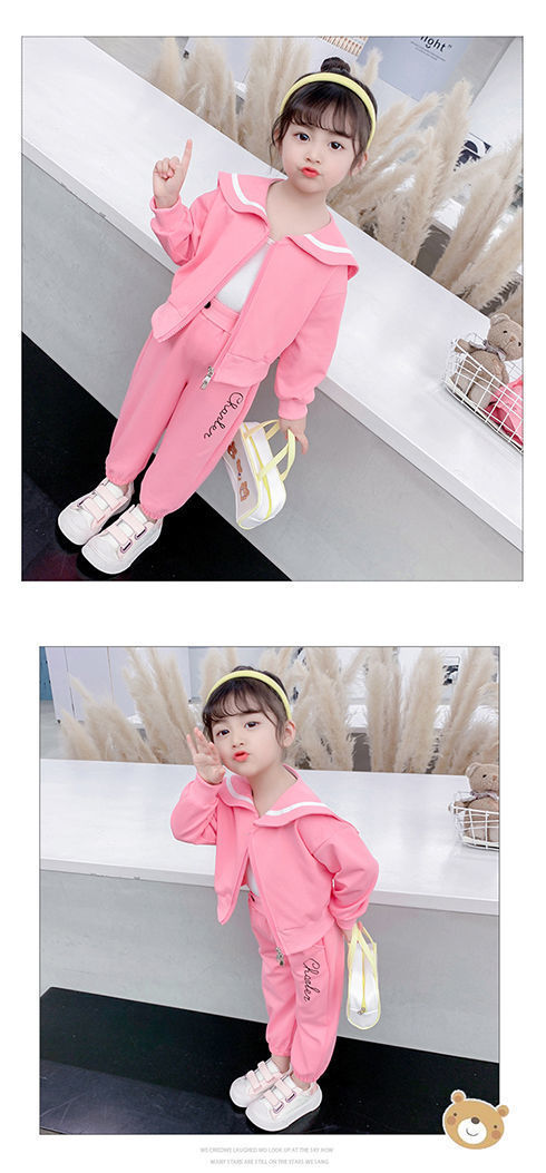 여성 아기 봄과 가을 세트 2022 새로운 어린이 한국 소녀 외국 스타일 조끼 2 피스 어린이 튀김 거리 옷스토어 가기