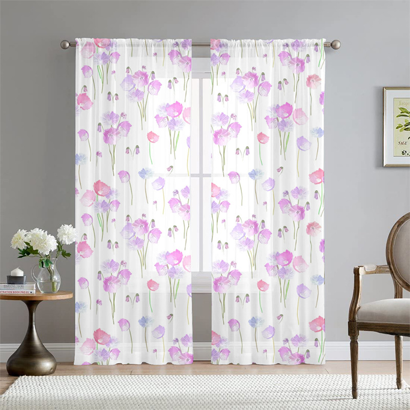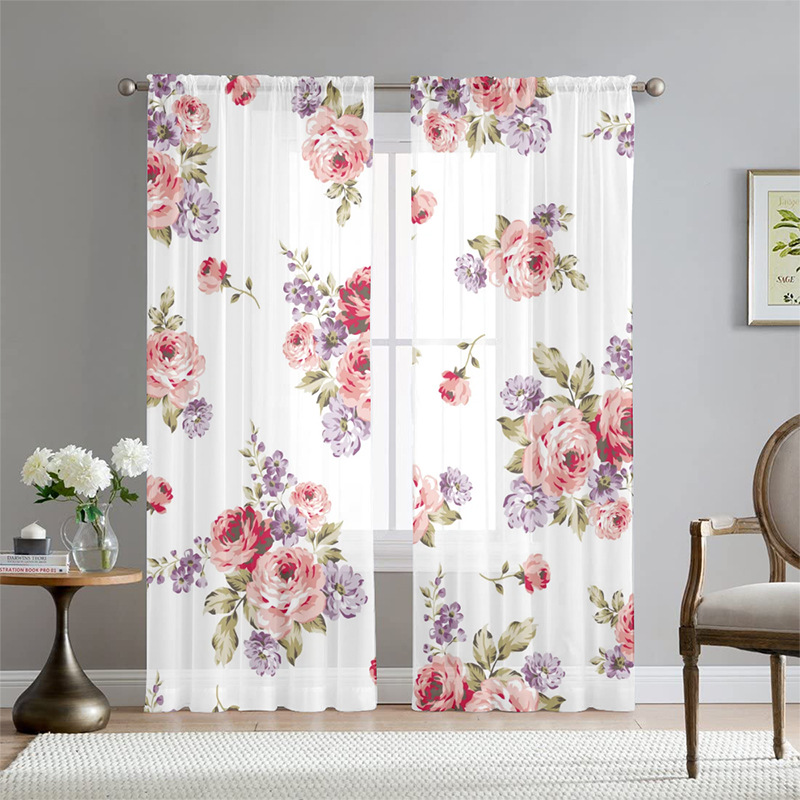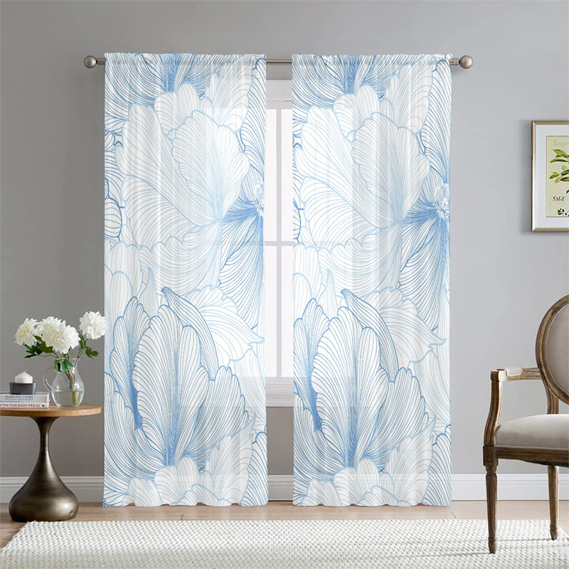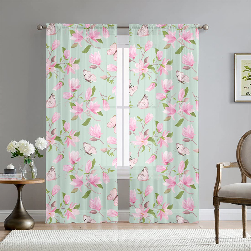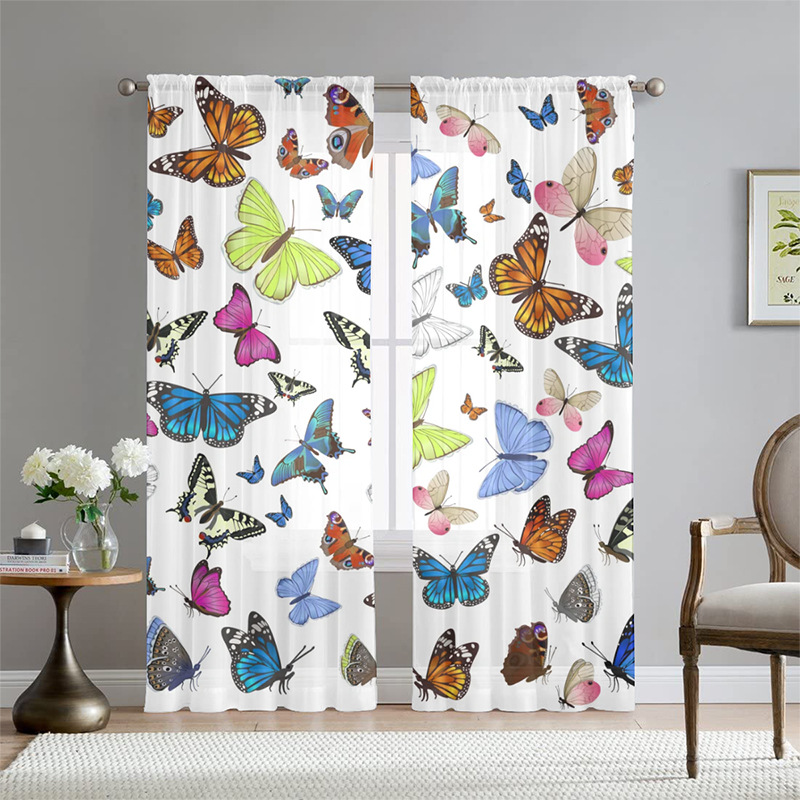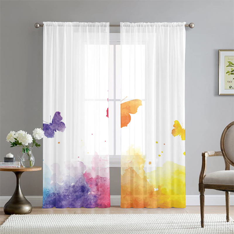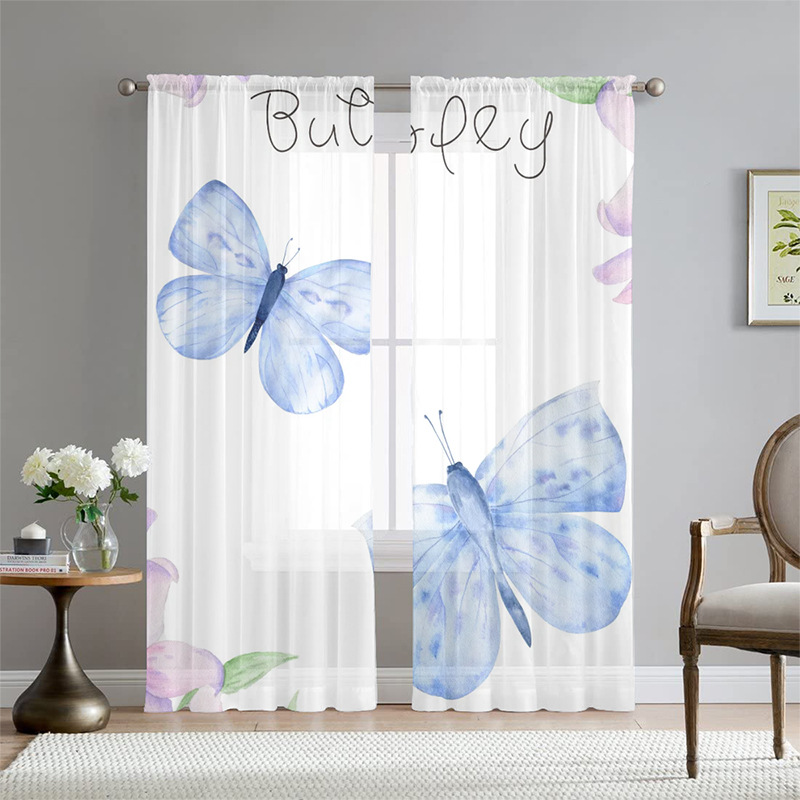 아마존 폭발 나비 꽃 인쇄 창 화면 거실 침실 베이 창 커튼 호텔 베이 창 스크린 커튼