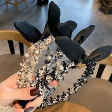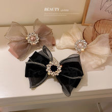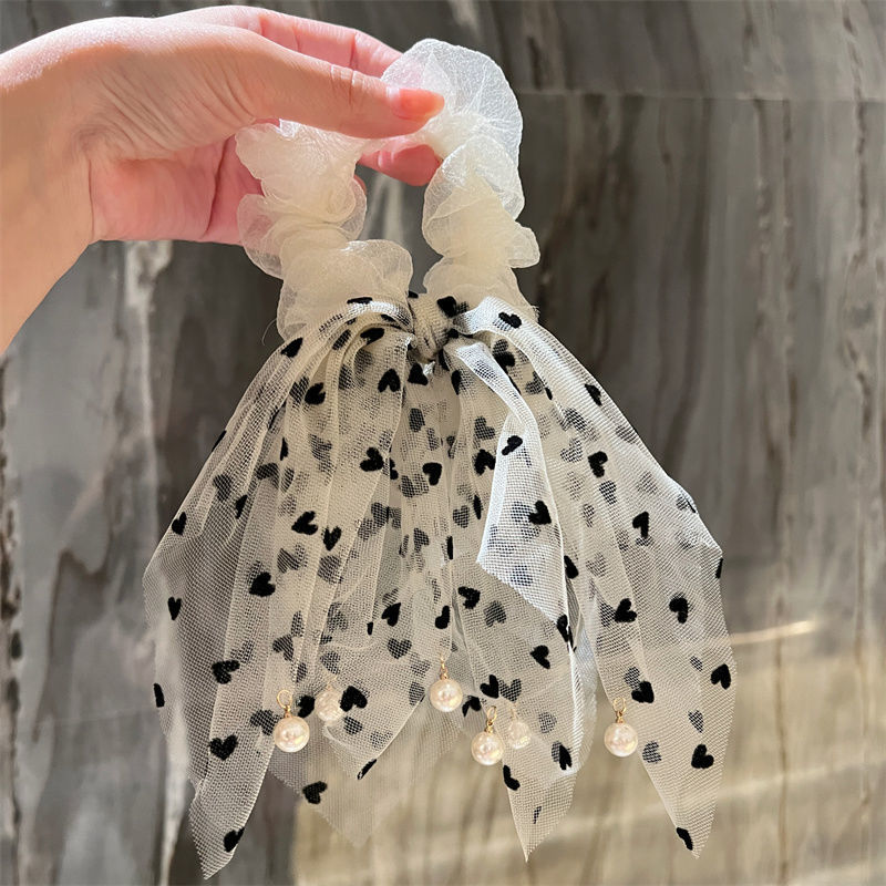 사랑 인쇄 메쉬 헤어 루프 리본 진주 펜던트 고급 결장 링 헤어 액세서리 한국식 간단한 레이스 모자