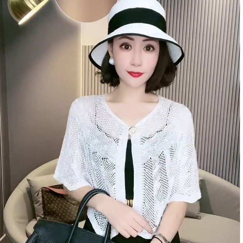 아이스 실크 양복 조끼 진주 버클 태양 보호 의류 숄 여성 가디건 재킷 태양 보호 원피스