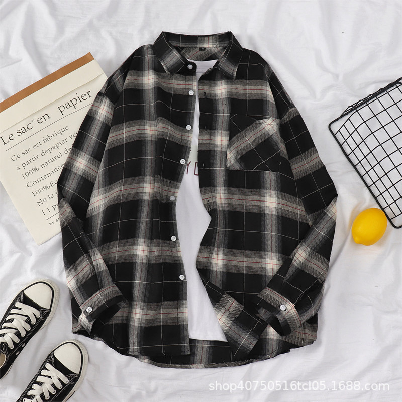 2022 봄, 가을 격자 무늬 셔츠 남성 긴팔 캐주얼 루즈 레트로 홍콩 스타일 패턴 셔츠 자켓 트렌디 탑 배송스토어 가기