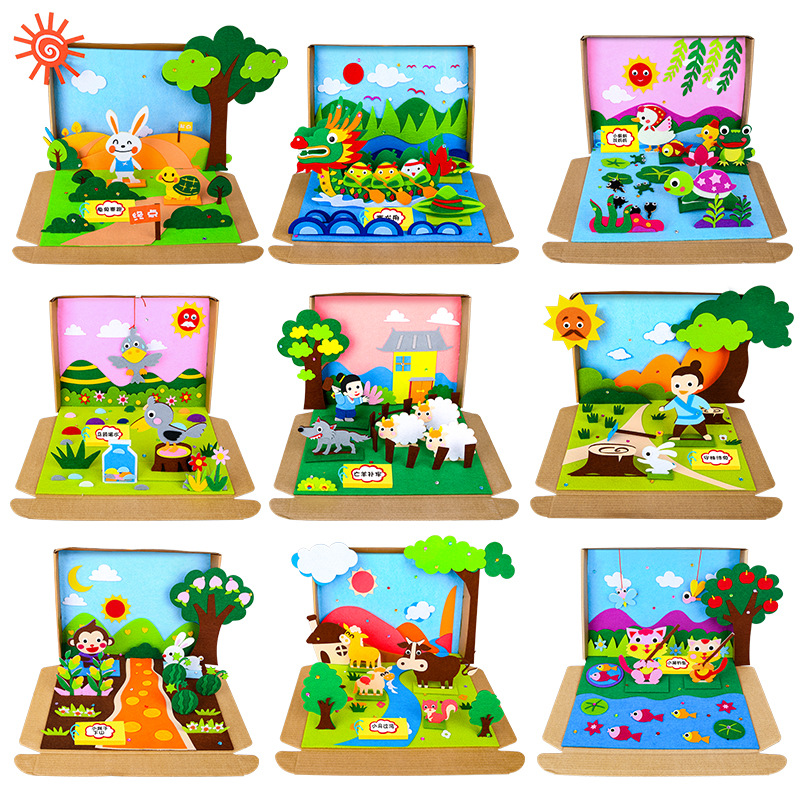 스토리 박스 DIY 부직포 그림책 소극장 아동 유치원 부모와 자식 손수 만들기 교재 가방